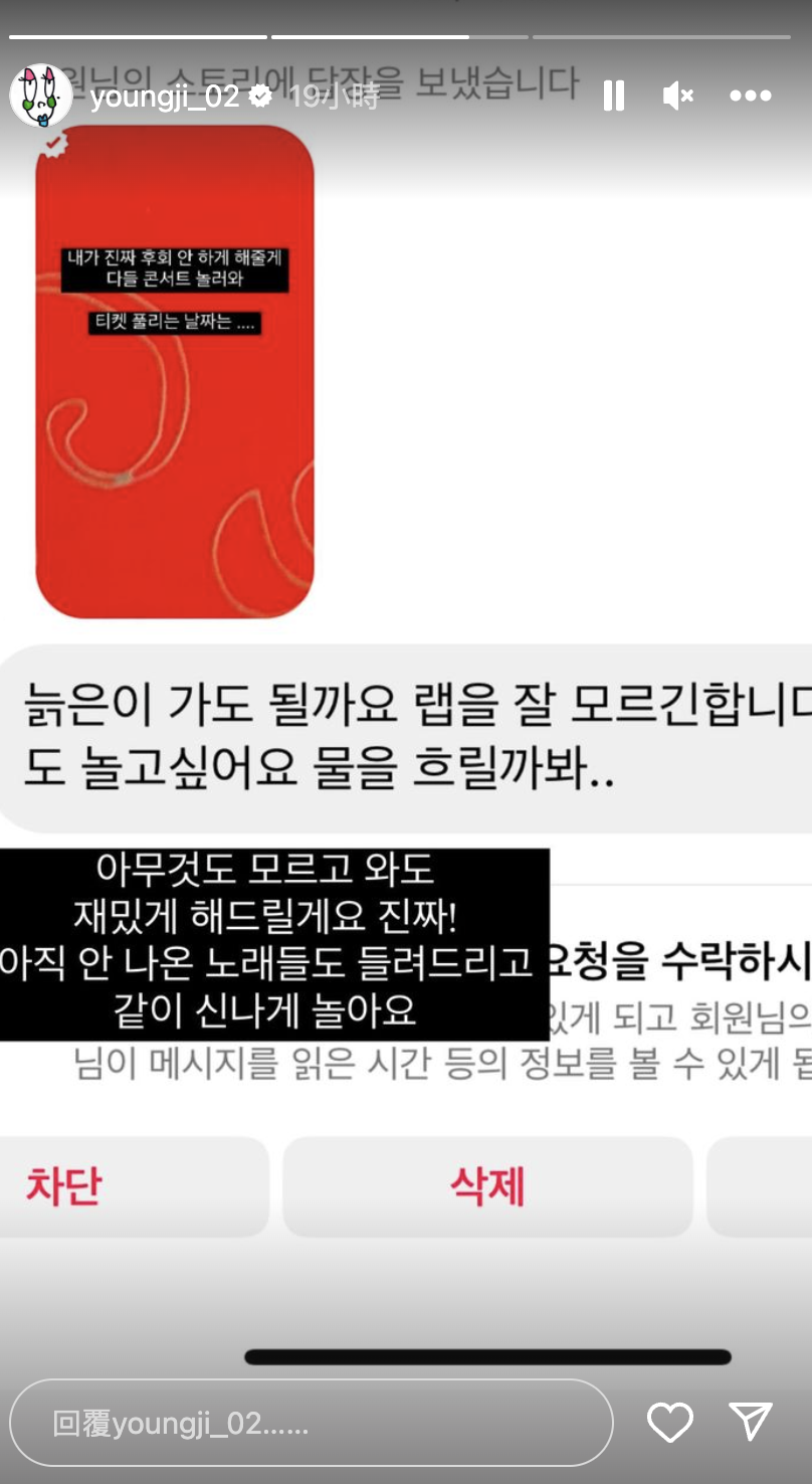 而李泳知稍早則透過限動霸氣回應酸民的留言,她在 IG 限動寫下:「我保證你們不會後悔,歡迎大家來看我的演唱會,門票已經開始銷售⋯⋯」此外,向來寵粉無極限的李泳知也特別回應了其他粉絲們的私訊,有人表示自己年紀有點大,可能聽不懂饒舌,但我希望玩得開心,只是怕破壞演唱會的氛圍。對此,李泳知也暖心回覆到:「即使你什麼都不知道,我也會確保你真正度過一段美好的時光。」並提前預告將演唱未發行的歌曲!