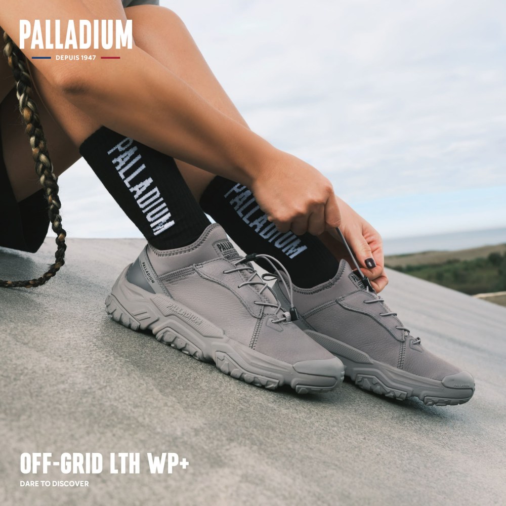 PALLADIUM熱門鞋型橘標防水輪胎潮鞋同步推出全新OFF-GRID LO LTH防水牛巴戈款式,維持了防水、輕量、穩定、快穿與耐用五大特性,以多層次幾何大底結構展現出俐落的全地形輪胎大底設計,同時兼具潮流風格與鞋履機能,鞋面則採用經金級皮革廠認證生產的高質感磨砂牛巴戈皮面料,兼具柔軟與透氣性,在鞋口部分配有襪套式設計同樣搭載全新第三代FAST LACING快速綁帶設計讓穿脫更加便利,全系列配色包含霧霾黑、燧石灰、沙漠棕、薄霧灰以及琥珀棕, 多樣配色滿足各種穿搭的需求。