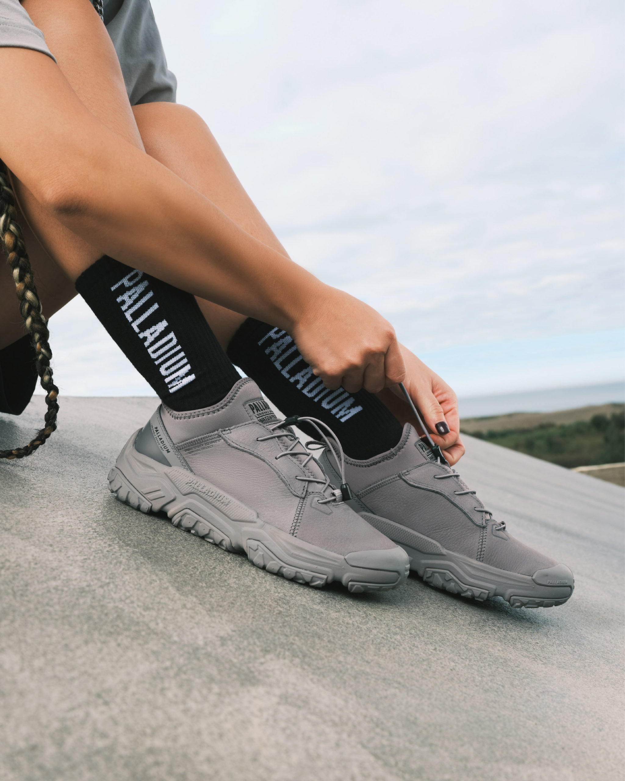 第四代PAMPA X TECH 全系列大底導入米其林獨特V字形胎紋、 3D 花紋槽與米其林獨家輪胎橡膠複合材質,搭配橘標防水科技及首次加入的熱熔薄膜鞋面設計,在穿搭上一口氣跨度科技與便利,不僅讓人可以盡情探索,每踩一步還能感受到舒適與安穩,從細節就能品味到 PALLADIUM 所給予的安心感。