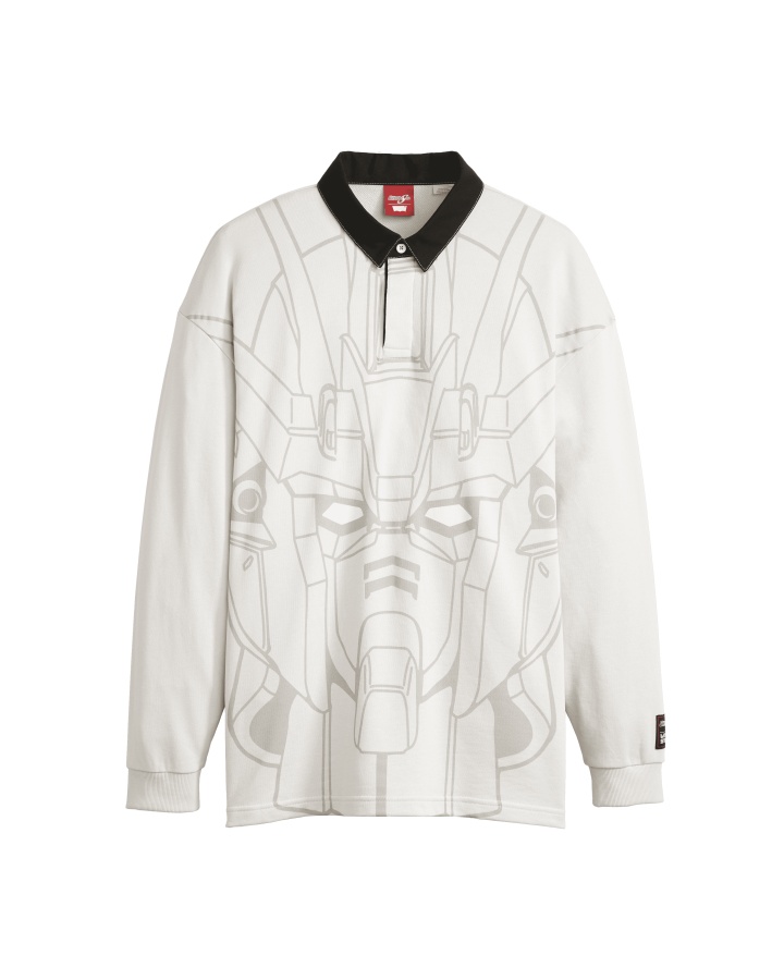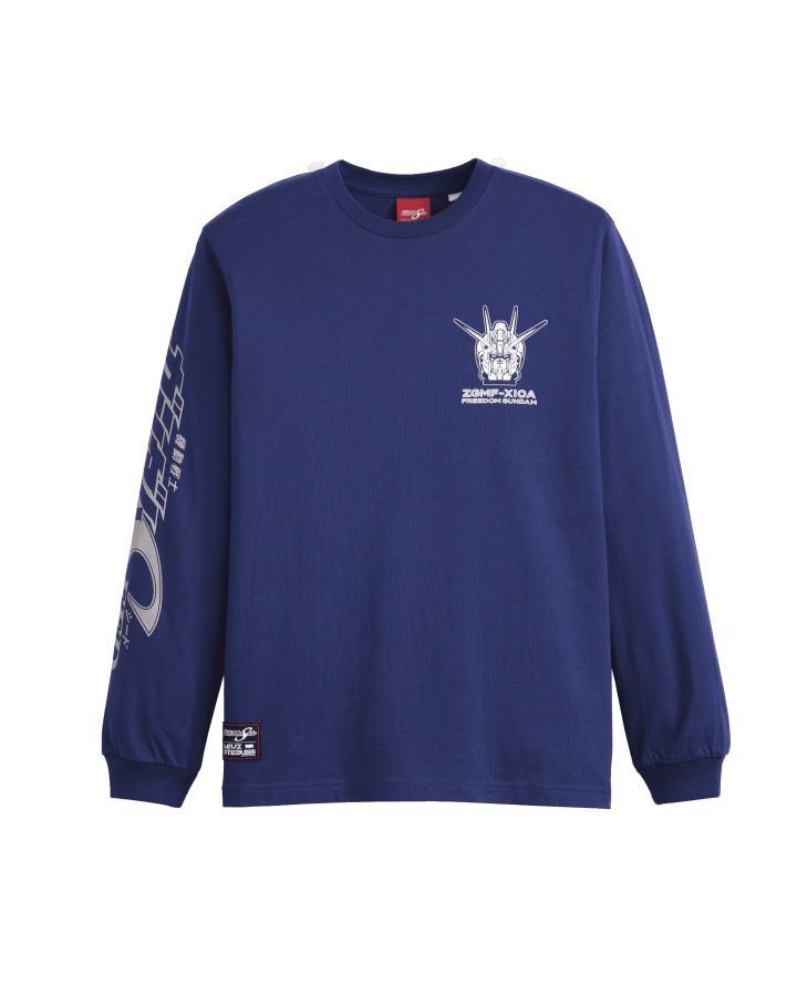 Levi’s® X Gundam SEED聯乘系列囊括多款前衛醒目上衣單品。以攻擊鋼彈圖紋與聯乘識別布標所打造的方正寬版短袖Tee,包含星空白和進化黑共兩款色選;淺灰色橄欖球衫搭配黑色斜紋棉領,正面亦保有巨型攻擊鋼彈圖紋;深藍色長袖衫背後帶有龐大耀眼ZGMF-X10A自由鋼彈圖紋,左胸和右袖上分別印有反光和非反光混和印花;紅色連帽衫胸前中央則顯現亮面質地GAT-X303神盾鋼彈圖紋,以及聯乘識別布標鑲於左袖。
