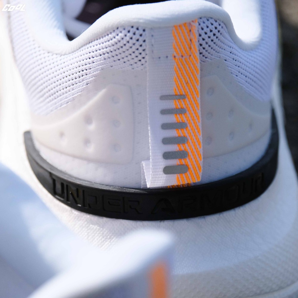 而 UA Infinite Elite 最重要的特點,就在於超厚實的全掌 HOVR+ 中底。HOVR 科技一直以來都是 UA 的招牌緩震,不過這幾年因為推出全新的 Flow 泡綿,使得 HOVR 存在感日漸變低,不過 HOVR+ 的出現,也為 UA 家族科技開拓新道路。表面上來看,HOVR+ 不論是質感或是觸感都類似保麗龍(?連兩隻腳相互摩擦都會發出類似保麗龍的刺耳聲響。一上腳後,先是會對 UA Infinite Elite 的「厚」留下深刻印象,同時每一步踩踏都能感受到十足的能量回饋,加上稍微有弧度的大底,每一步的轉換也都加倍流暢。