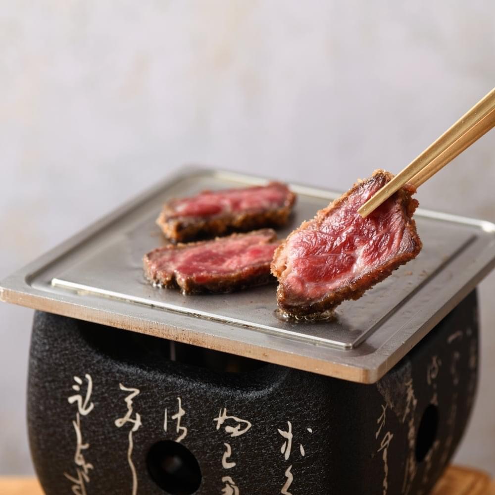 在台中擁有多家分店的人氣炸牛排料理—— 嵐山熟成牛かつ,招牌的炸牛排收服饕客,炸至外層酥脆內裏三分熟的牛排,可以再依照個人喜好用桌上的小烤爐煎烤,有霜降紐約客跟特選級翼板可挑選,喜歡帶有咬勁可以選擇霜降紐約客,喜歡油花分佈勻稱軟嫩則推薦特選級翼板,酥脆外皮配上鮮嫩多汁的牛肉,口感十分特別!超浮誇如山一般根本看不到飯的特上帶骨牛小排丼飯更是許多肉食愛好者推薦必吃,使用秘制醬汁醃製炙燒後的牛小排香氣逼人,醬汁更是下飯,一不小心就整碗不剩了!