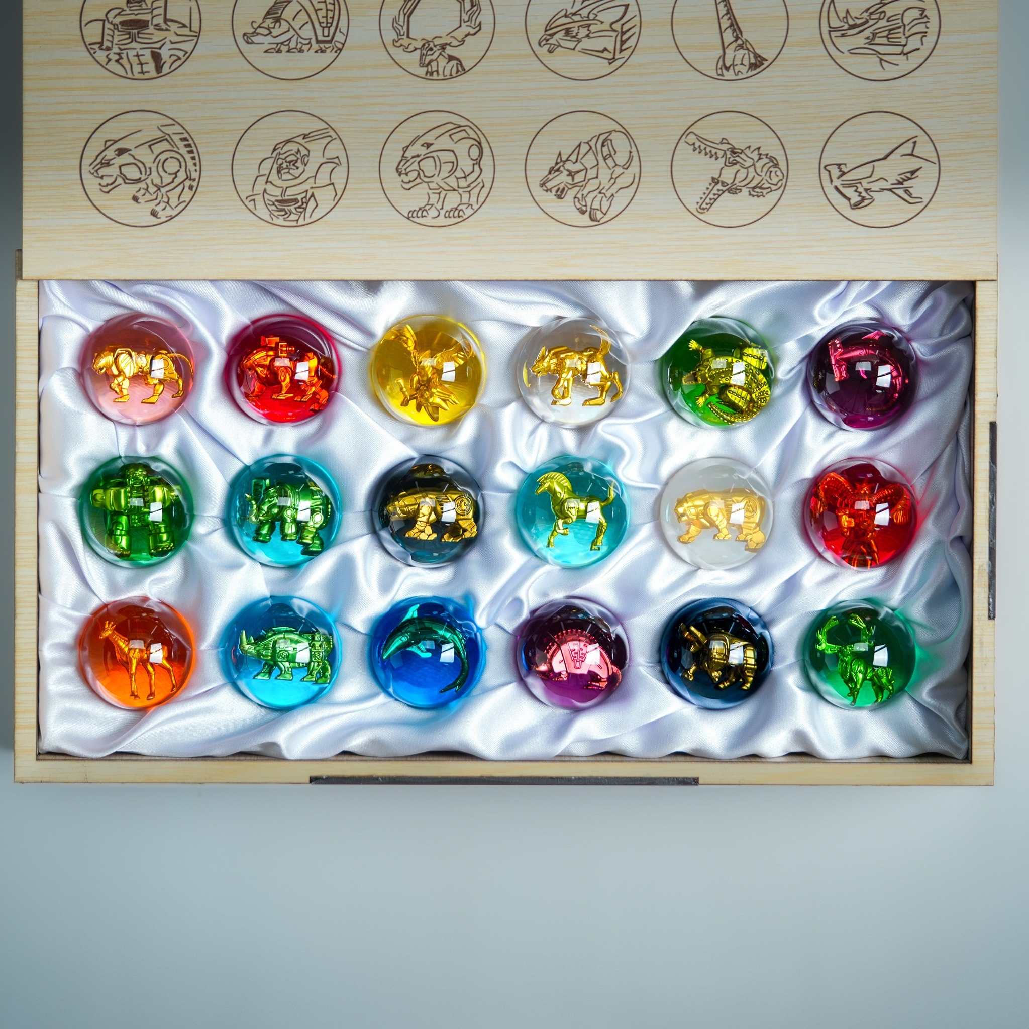 據了解每一顆寶珠都是團隊手工打造而成,18 顆的版本包含:紅獅王、金鷹王、藍鯊王、黑牛王、白虎王、大象王、長頸鹿王、獵鷹王、穿山甲王、野鹿王、犀牛王、猩猩王、黑熊王、北極熊、猛鯊王、鱷魚王、銀狼王及馬王(馬王是在原作最後一集僅以寶珠形式出現)。