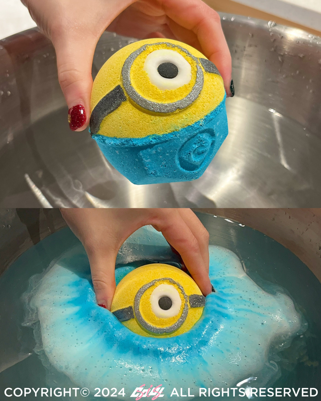 限定推出蘊含甜美的零陵香與香草精萃的小小兵汽泡彈,,把它放進注滿溫水的浴缸,浸泡在蕉香四溢的香氛浴中,藍色、黃色的搭配在浴缸中更有一番視覺上的療癒感~