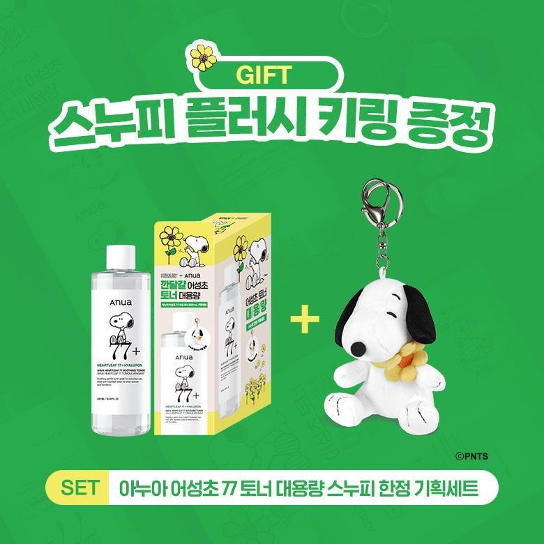 史努比控看過來~ Olive Young 人氣銷售魚腥草保養品牌,富含天然成分且保養品中含高達 77 % 魚腥草成份,可以鎮定舒緩肌膚且調理油水平衡。這系列也跟史努比聯名啦,化妝水送的史努比鑰匙圈簡直不要太可愛!