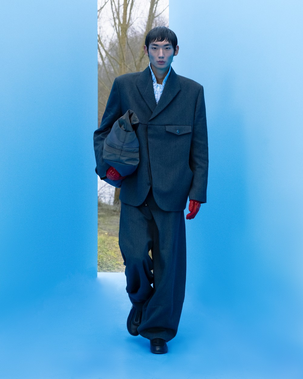 本季系列汲取了行為藝術家 Marina Abramović 的《Rest Energy》——這是一段關於信任與人際聯繫的研究,以及電影《小活佛》(Little Buddha),故事中孩子們步上輪迴的旅程。不丹風格的元素即是 Steve 向母親的致敬,將靜謐的精神性與現代感相融合。這些靈感體現在微鬆弛的高領襯衫、獨特的翻領設計及非傳統剪裁的輪廓中,既挑戰傳統又散發著輕鬆與壓抑。