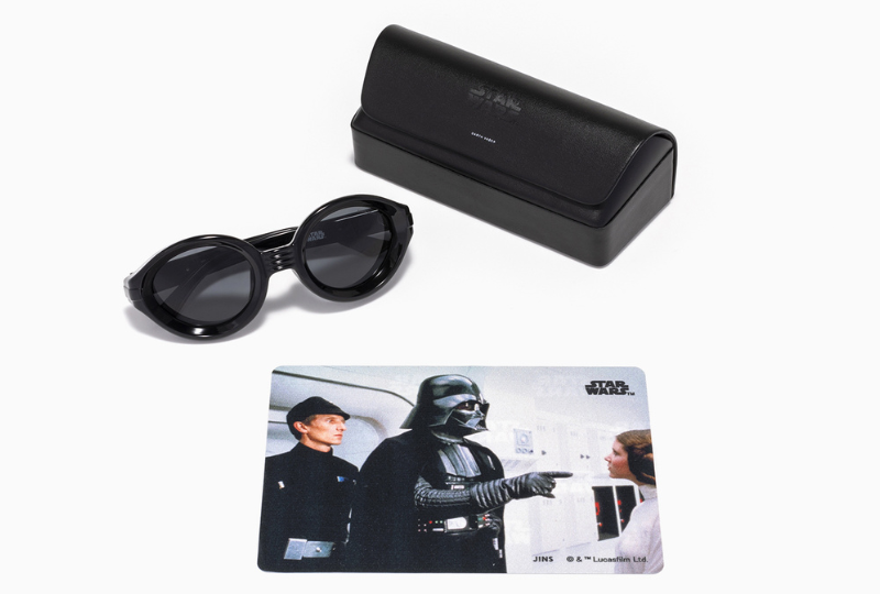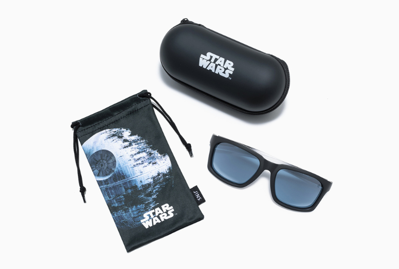 其中「黑武士款」不僅在鼻橋上極其巧妙地融入黑武士面具的線條設計,讓你戴上墨鏡就如同戴上黑武士面具,掌握黑暗原力,鏡腳側邊更還加入黑武士胸口的復古科技感燈光與按鈕圖案,JINS的設計簡直潮度滿分,同時又保留了星戰原味,最後加上鏡片上緣那低調又精緻的雷射雕刻字句,完全是細節、情懷與外型三合一大滿貫的暗黑系神墨鏡!