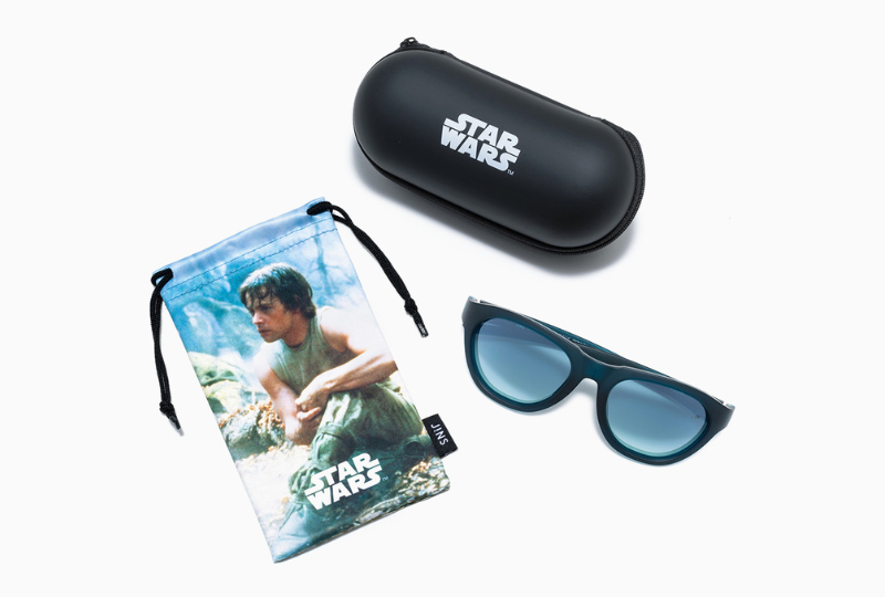 精品典藏感瞬間升級!儀式感滿滿且十分用心的JINS產品設計團隊這次可真是放了大絕招,三款線上商城限定、限時且限量的《星際大戰》眼鏡盒分別有初代四、五、六部曲的復古海報,整個情懷與珍藏感都被熊熊點燃了~背面還有《星際大戰》著名的片頭、片尾字幕,側邊也以精緻的燙金印製《星際大戰》LOGO與光劍圖像,內裡高檔的絨布設計可以收藏兩支墨鏡,真的是精美到COOL編直接目瞪口呆~