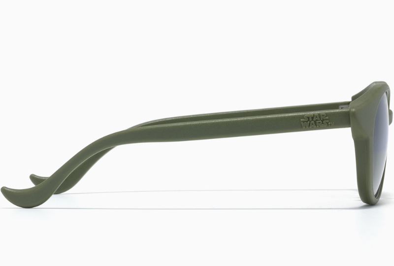 以行星「恩多星(Endor)」為靈感的墨鏡款式,深淺有度、色階層次豐富的墨綠色中,可以看見鏡片上有《星際大戰》飛行器的雷射刻印!