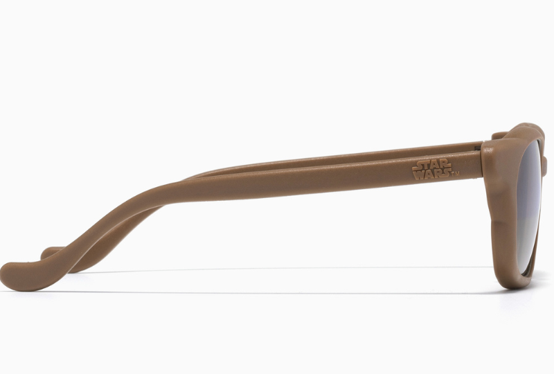 以天行者家族的故鄉行星「塔圖因(Tatooine)」為靈感的墨鏡款式,雙太陽照耀在金黃色沙海是塔圖因的代表風景,鏡片還原這顆沙漠星球的沙紅色漸層,鏡片上有《星際大戰》爪哇族沙漠爬行機(Sandcrawler)的雷射刻印!