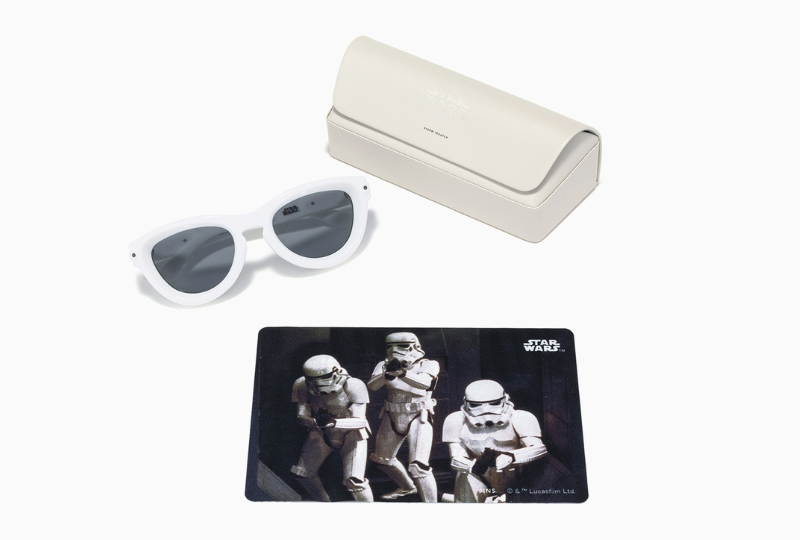 本次聯名系列欠收藏的頂規款墨鏡!不以正派絕地武士的大地色+藍、綠色呈現,而是反骨地透過戲劇性黑化的安納金˙天行者aka. 黑武士的濃烈深黑,以及無情、機械化的風暴兵白作為基調!框體俐落的冷酷流線之中又帶有舒適機能度滿分的彈簧鏡腳,加上在烈日下顯得加倍高調搶眼,且視覺感深烈的兩種蛋橢型偏光鏡片,讓戴上此兩款墨鏡的粉絲們,不管從什麼角度看,都妥妥地是《星際大戰》風的時尚尖端潮人呀!