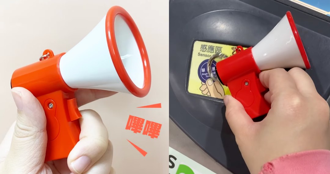 舉凡戶外活動、賣場推銷、掃街拜票等大型聚會場合,「大聲公」是不可或缺的必備工具之一,這次愛金卡公司將其縮小成迷你掌心大小,搭配經典紅白配色掛在包包上相當搶眼。