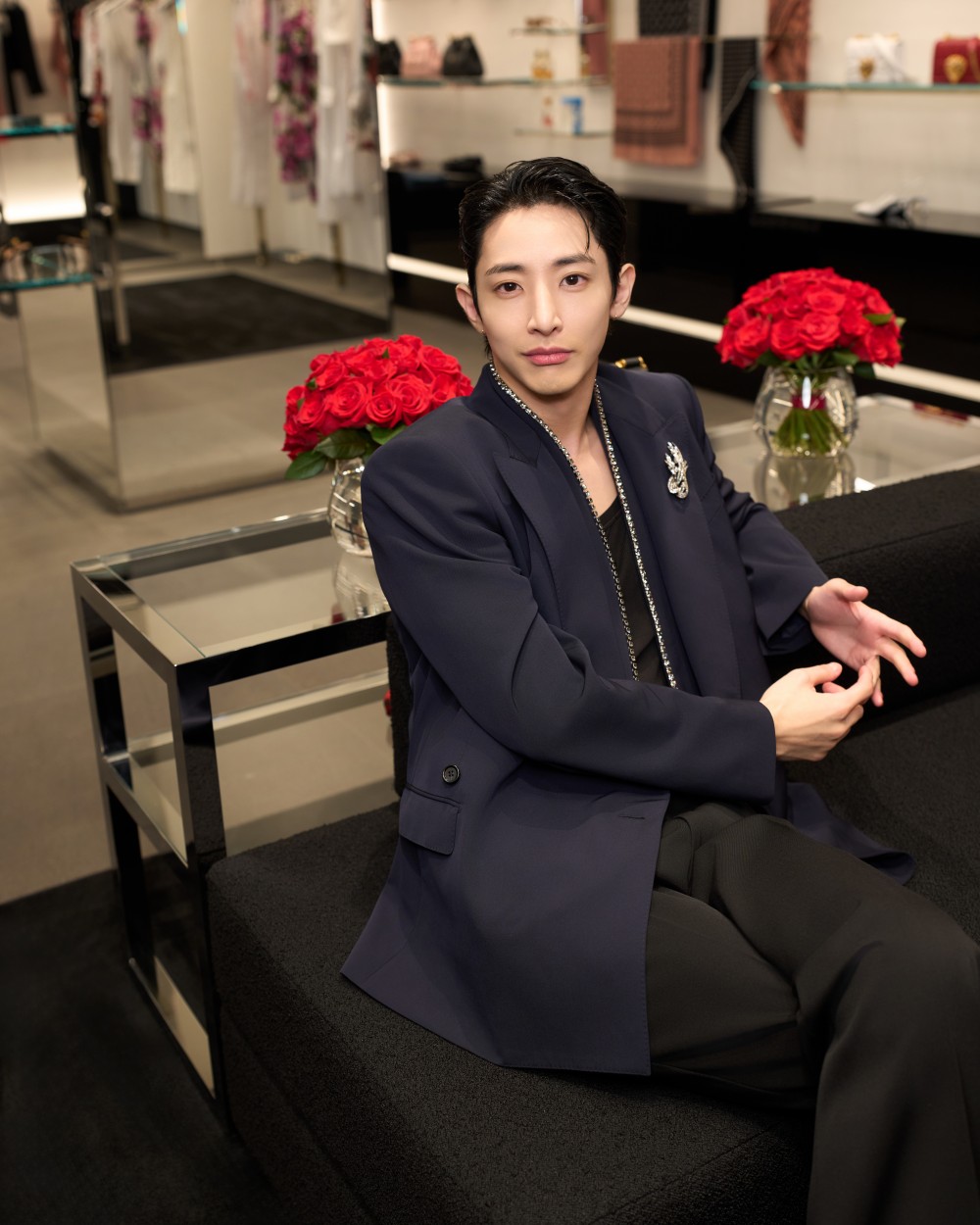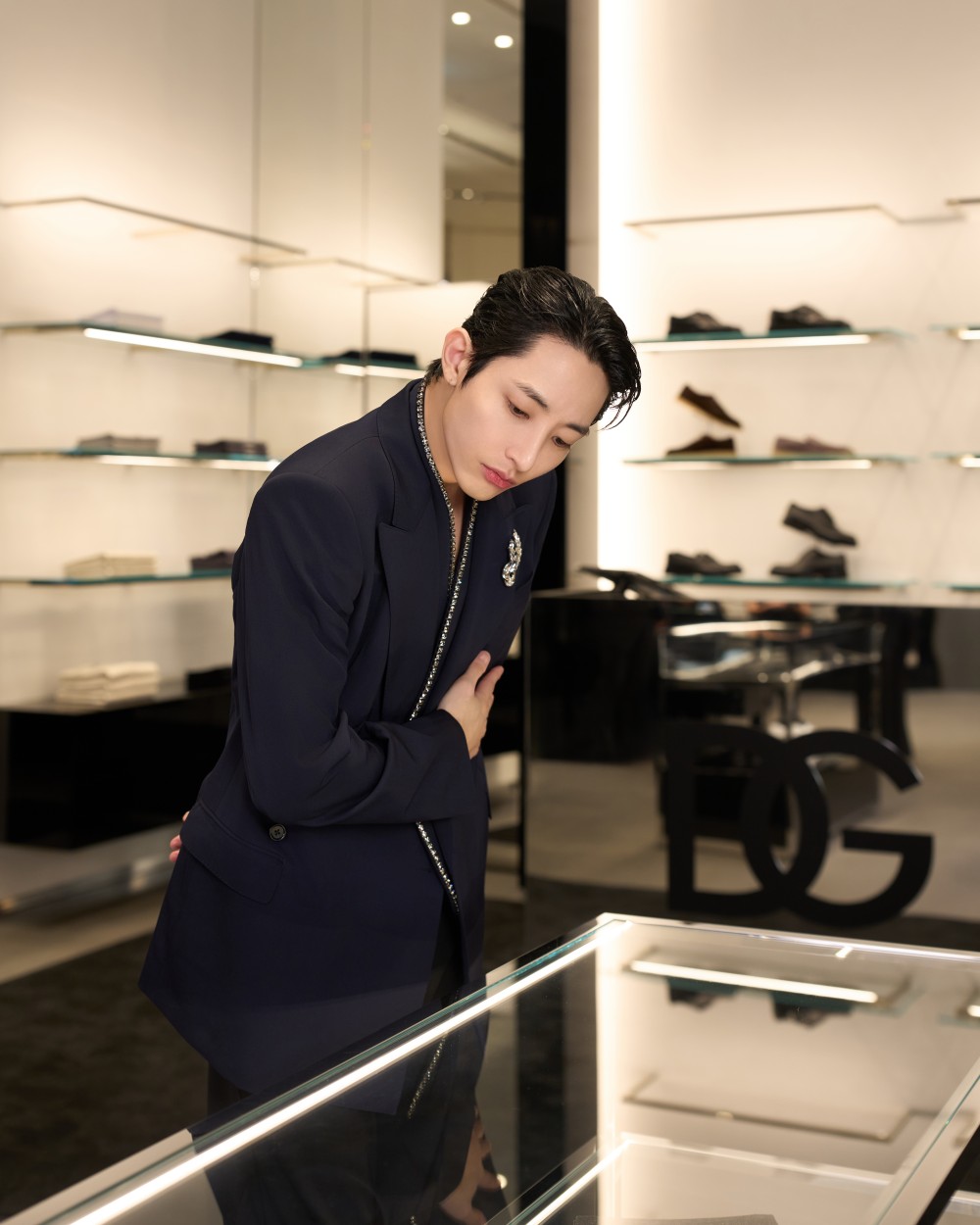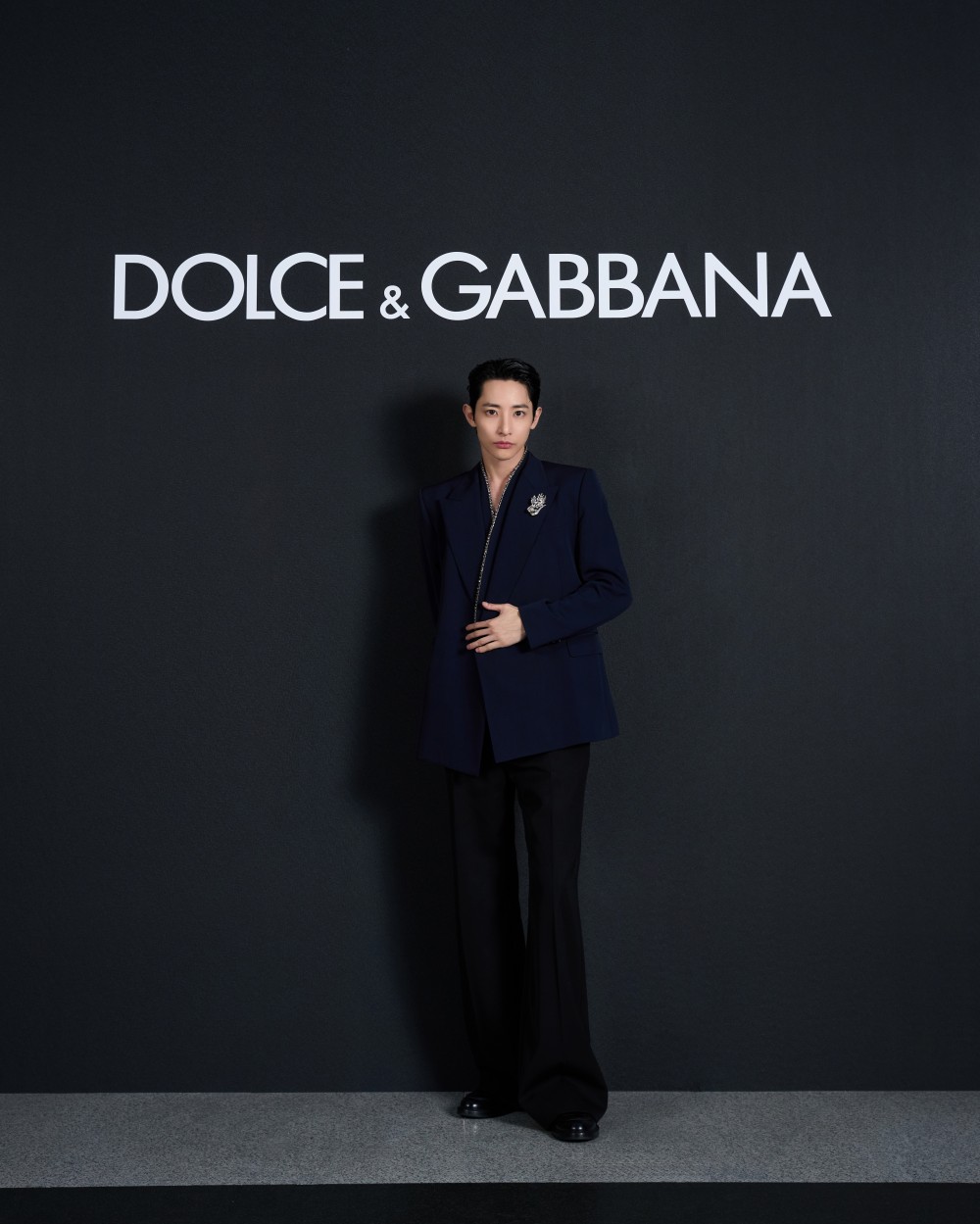 Dolce&Gabbana 在韓國演員李洙赫 (Lee Soo Hyuk) 受邀現身台灣的此刻,正式為品牌在台灣開啟新篇章。 品牌好友李洙赫為記者會這天選擇深色系、且具有品牌標誌性設計的大劍領休閒西裝,展現他獨有一貫的冷咧魅力,呼應 Dolce&Gabbana 始終專注於自我特色的堅持。