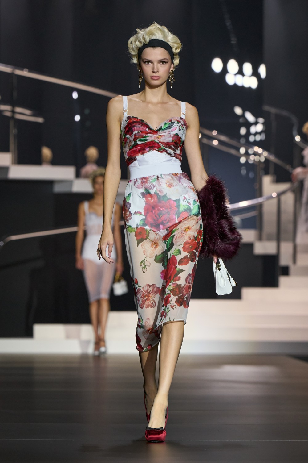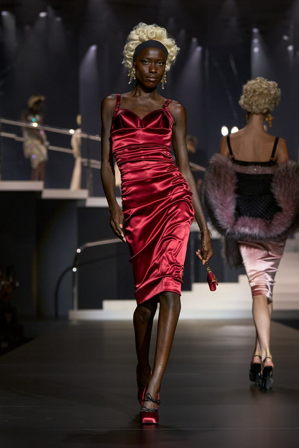黑色、裸色、紅色和白色是缺一不可的顏色;本季以季節性胸衣重新構想連衣裙,女性化剪裁的靈感來源於 1950 年代的電影。