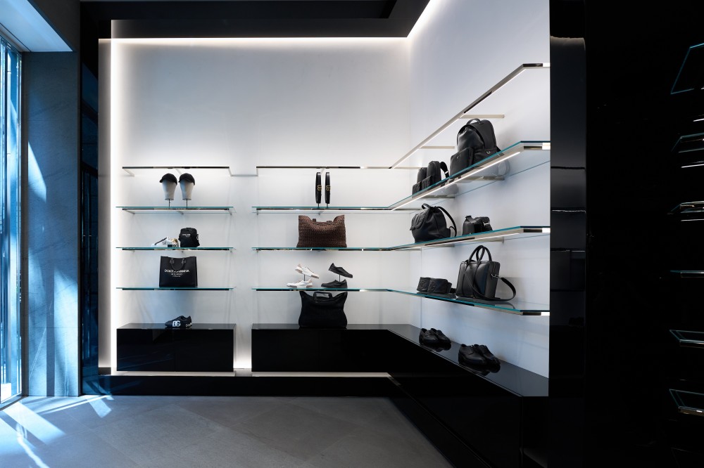 而這份對設計語言的堅持,同樣體現在新旗艦店的店裝之中。黑色是品牌認為最美麗的顏色,店面外牆與室內地板特別選用自義大利空運來台的黑色 Basaltina 火山岩石,讓人想起孕育 Dolce&Gabbana 起源 – 西西里島的埃特納火山。