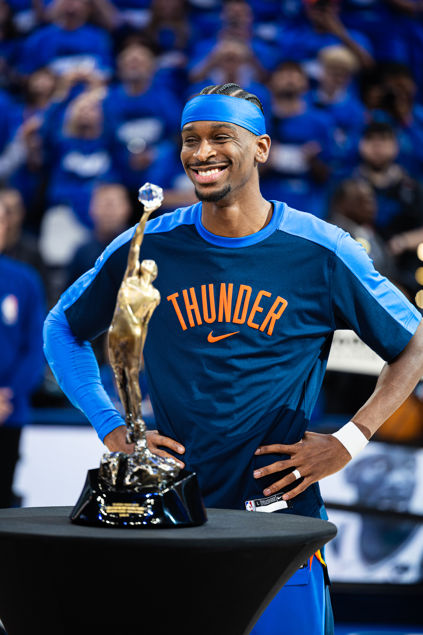 Gilgeous-Alexander 在賽前由聯盟總裁 Adam Silver 親自頒發 MVP 獎座,雖坦言情緒高漲導致開局稍顯疲軟,但仍全場命中 12 記投籃並罰進 13 球,展現一夫當關的姿態。他說:「情緒真的很激動,開場甚至有點太興奮了。能贏球真的讓這幾天的喜悅更加完整。」