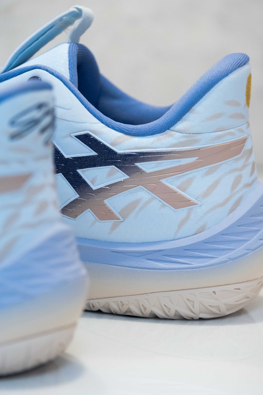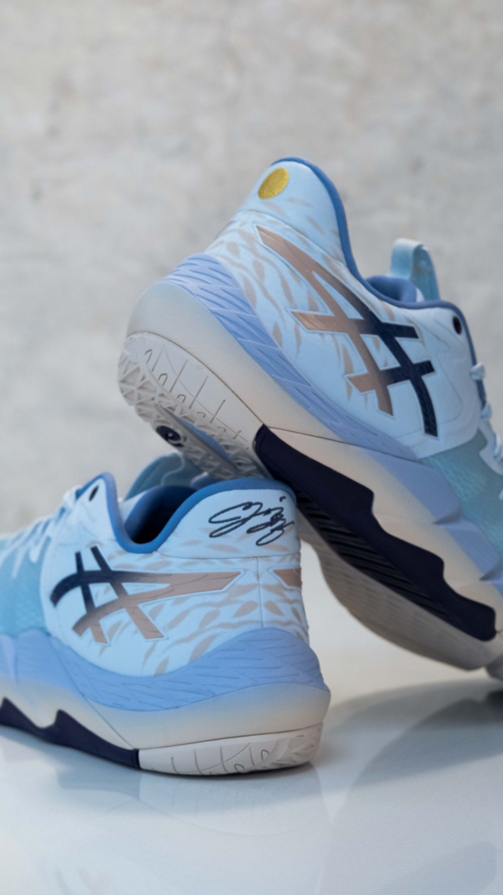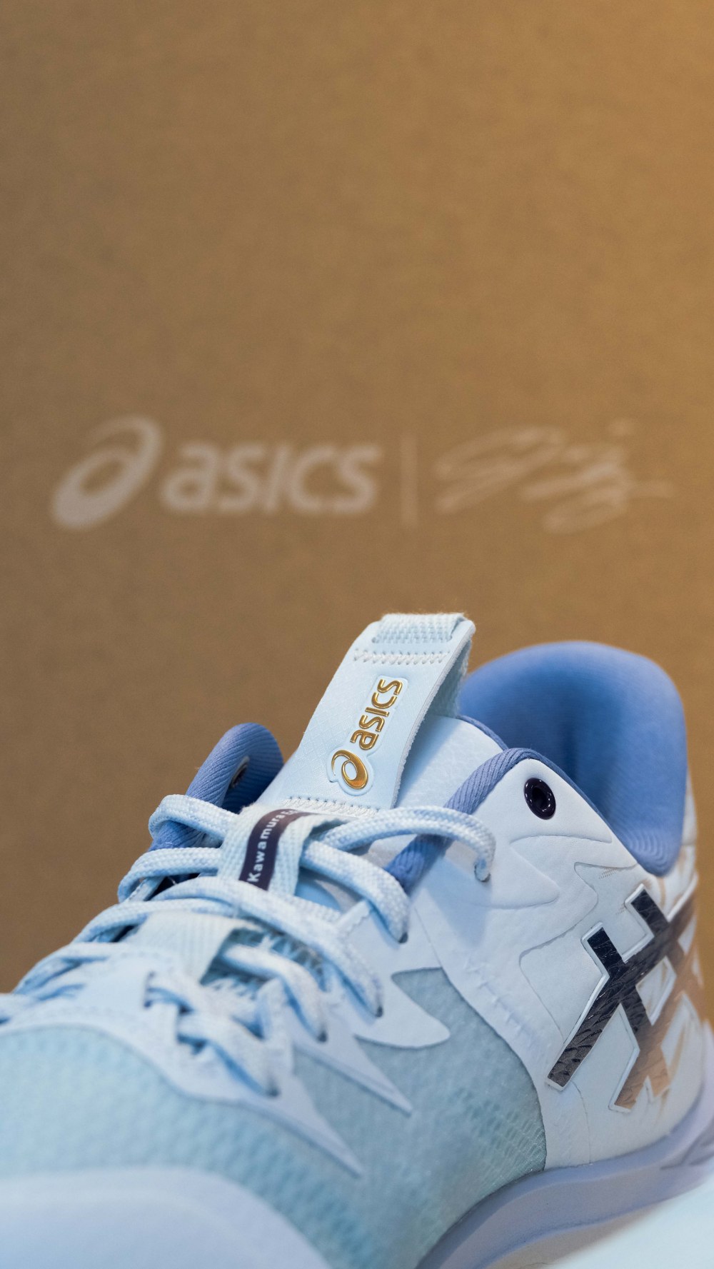 色彩設計上,從清澈的天空藍一路過渡到夕陽般溫暖的橘色,象徵著他從早晨練到黃昏的訓練時光。每一處細節,都藏著 ASICS 對這次「河村勇輝限定配色」的誠意與巧思,不只是致敬他在球場上的表現,更是一封獻給過去努力歲月的信。