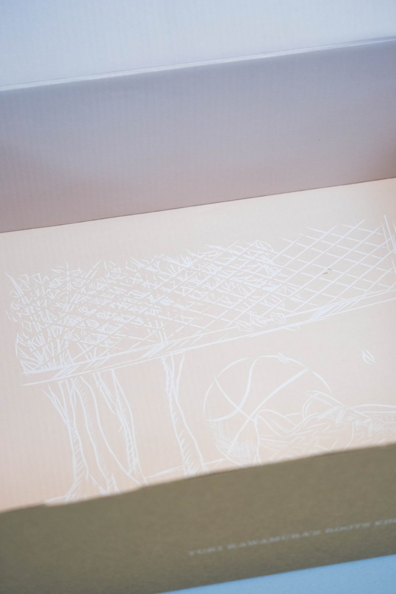 打開鞋盒的瞬間,一段專屬於河村勇輝的籃球故事便躍然眼前。鞋蓋內側印有他成長歷程的文字,訴說著這位控衛新星如何一步步走向世界舞台。而襯紙下方的插畫,則描繪出那個夢想起點-他家後院由父親親手搭建的籃框,正是他無數次投籃練習的地方。