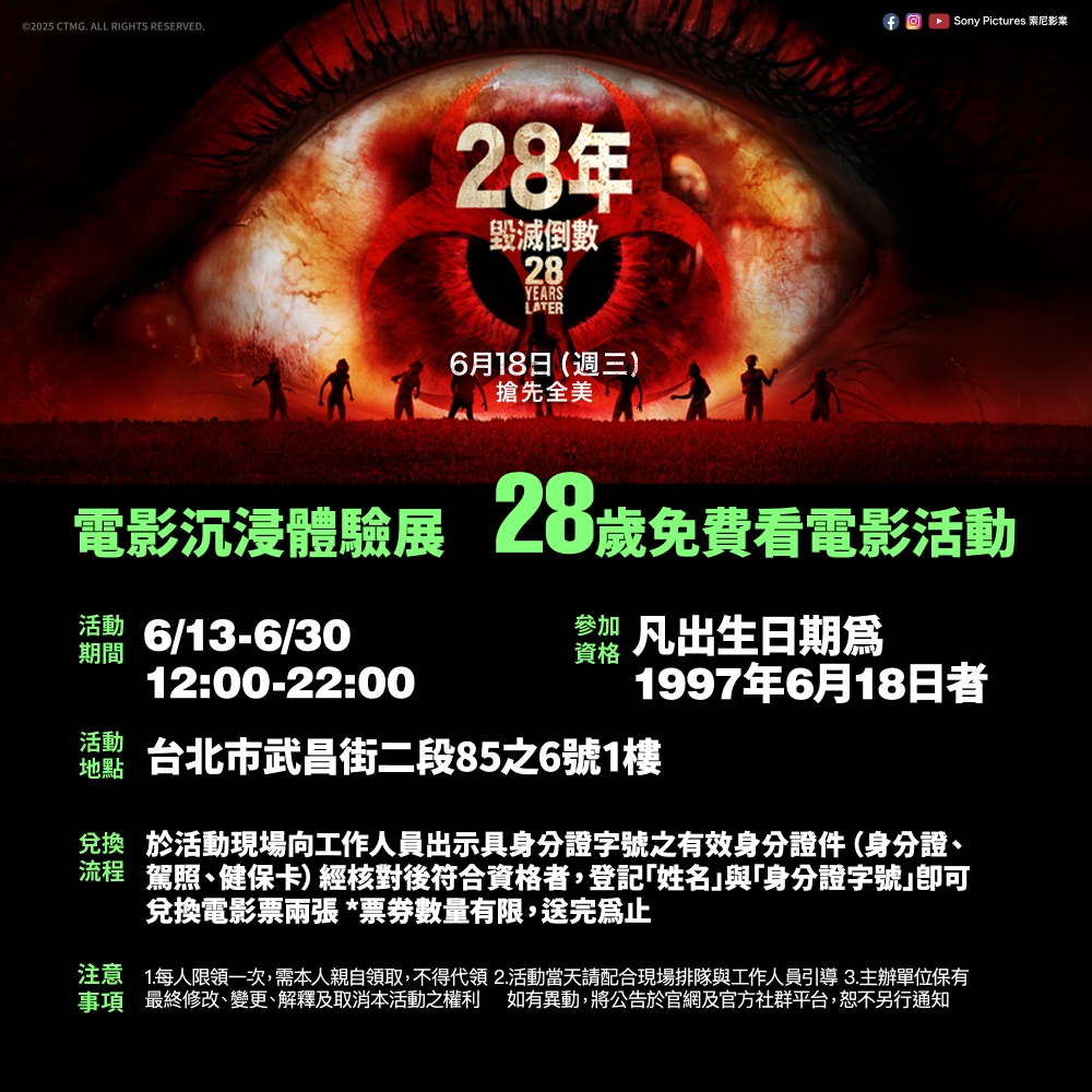 《28年毀滅倒數》電影沉浸體驗展在台盛大開幕,28 歲還可免費看電影!