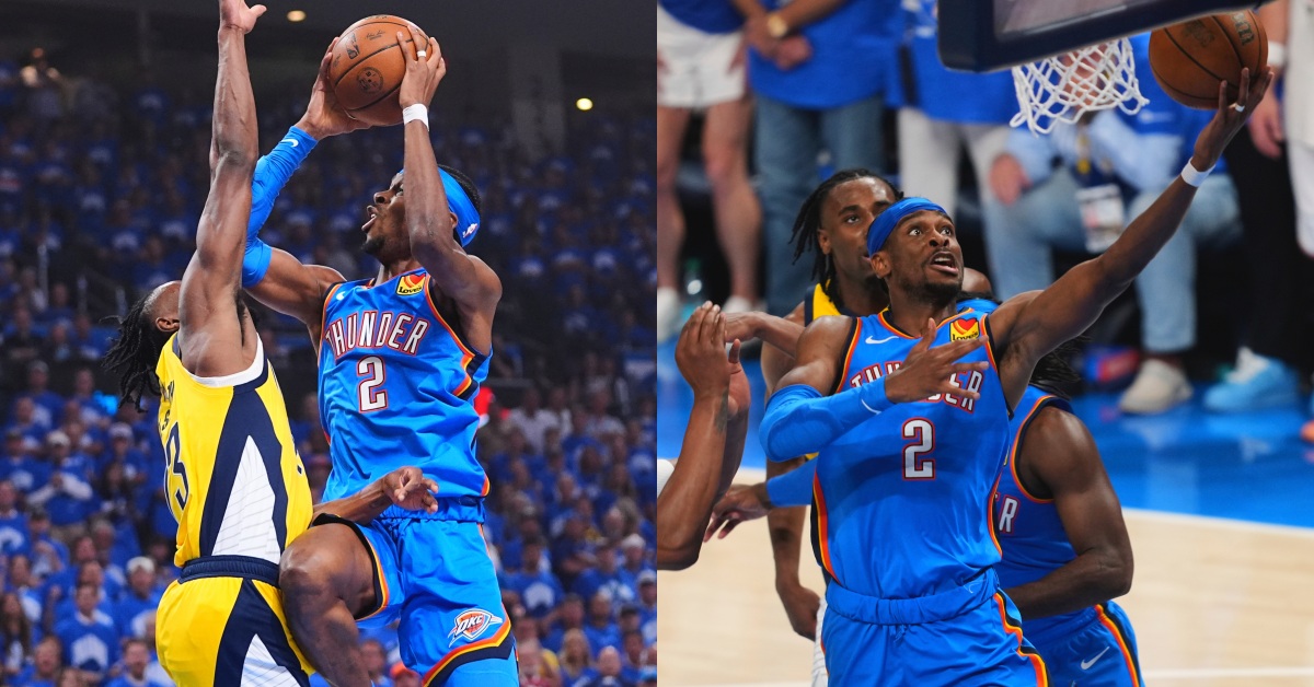 首節溜馬下起三分雨,P.Siakam、Tyrese Haliburton 接連砍進三分外線,其中 Haliburton 更是投進三記,個人獨拿 9 分。但沒想到他卻於第一節倒數 4 分 55 秒時,突然於一次切入過程中「無碰撞」倒地,事後需要隊友攙扶才能離場,表情看來十分痛苦,事後也確定本場比賽不會回歸。首節 SGA 也拿下 8 分,幫助雷霆暫時取得 3 分領先。