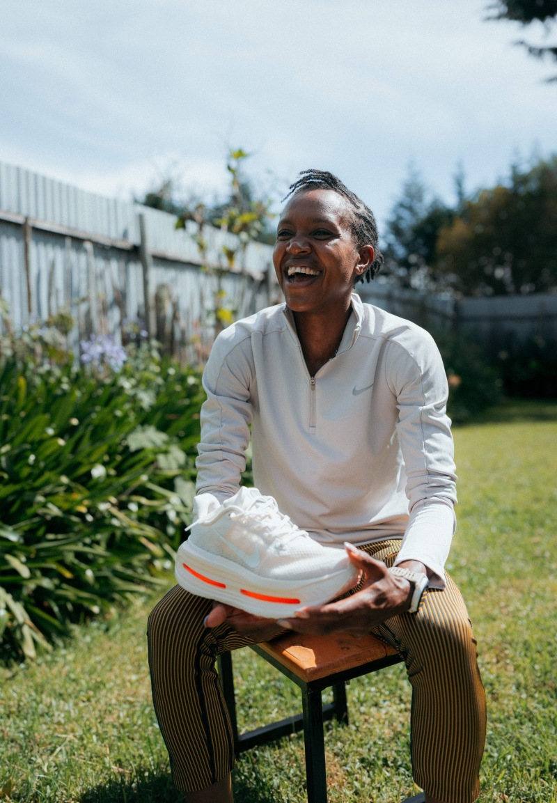 Faith Kipyegon 說道:『Nike Vomero Premium 是我備戰「破四計畫」過程中至關重要的夥伴。它柔軟、緩震效果好,且極為舒適,讓我能夠在更小的衝擊下完成高強度訓練,加快恢復節奏,專注於自己的目標。』