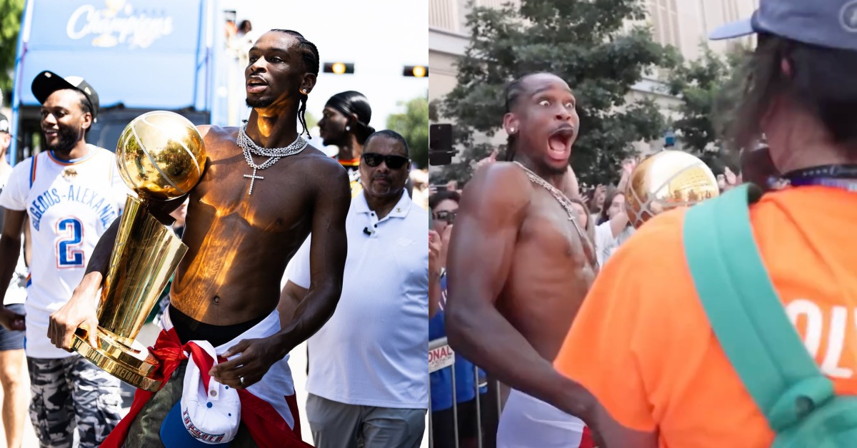 這次冠軍遊行雷霆球員紛紛下車與球迷們見面,SGA 還抱著冠軍獎盃跟民眾互動,在球迷的狂歡之下,SGA 也以搞怪表情回應,該影片在網路上引起討論,許多人紛紛表示:沒看過這樣的 SGA。