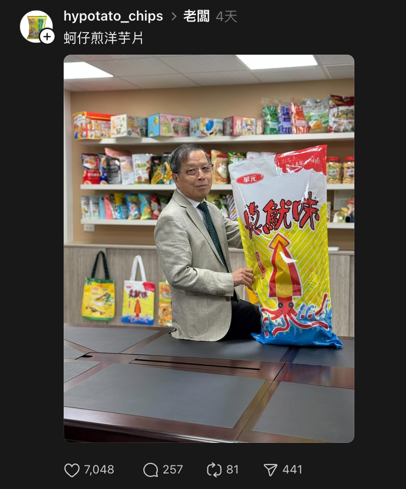 「蚵仔煎洋芋片」網路新梗你跟上沒?我研究了一下,原來是華元食品小編開 Threads 帳號,不管什麼都是「蚵仔煎洋芋片」這六字箴言,短短 1 週就火爆全網,吸粉破萬!