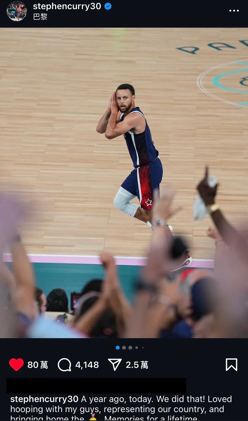 2024 巴黎奧運美國男籃帶給全球球迷一場場精彩賽事,其中更讓球迷們難忘的莫過於 LeBron James、Stephen Curry、Kevin Durant 的三巨頭組合,可能是再也見不到的夢幻連線。這一點不只球迷,連 詹皇、Curry 事後都不斷發文紀念這段旅程,兩人還聯合發文 Po 出合照,可見都覺得這次合作相當難能可貴。