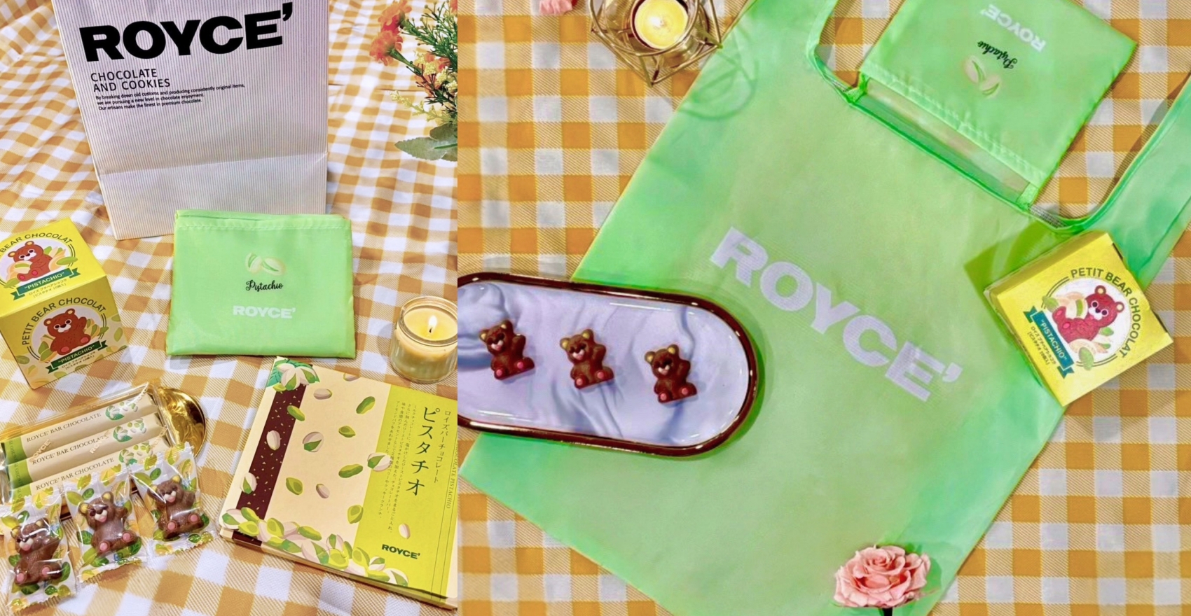 首推第一款「ROYCE’小熊開心果巧克力」長的呆萌,揮手姿勢很像在說:「趕快來吃我><」,咬下一口,還真的會忍不住想狂吃!外層使用帶有覆盆子香氣的牛奶巧克力打造,內餡則藏著濃郁滑順的開心果奶油,從外到內都酸甜不膩、層層驚喜!根本就是你身邊那位開心果本人,明明每天都見,卻總能有新花樣,永遠保有新鮮感!「ROYCE’小熊開心果巧克力」不只口味有層次,還有「Raspis」的暱稱,這個可愛的小名藏著滿滿巧思,正是取自 Raspberry(覆盆子)與 Pistachio(開心果)兩個英文單字的開頭,將兩種經典風味的靈魂完美結合,湊成一對超合拍的組合,就像你們一樣又甜又鬧,但搭起來就是很速配!