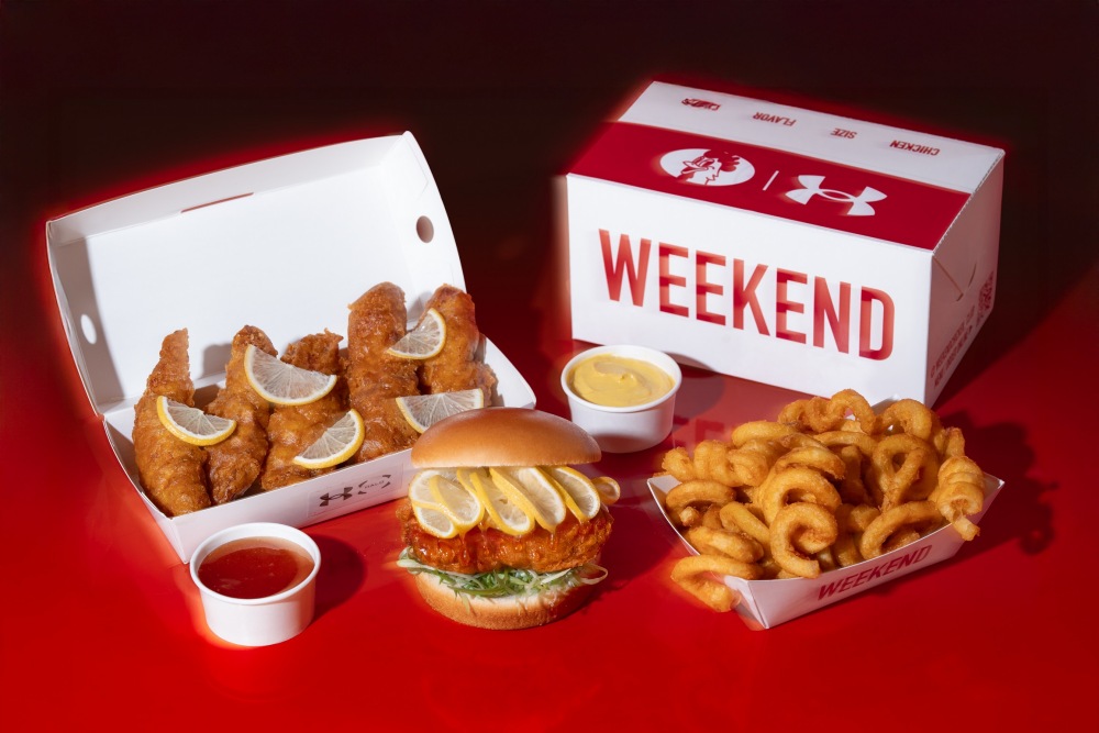 UNDER ARMOUR首度與台式炸雞店「週末炸雞漢堡俱樂部 大巨蛋店」跨界合作,即日起至9月14日限定登場!店內將展出全新「UA HALO」系列商品,並推出多款結合運動能量與罪惡美味的限定餐點—以超級食物杏桃、黃檸檬、蜂蜜入饌,打造超級杏桃炸雞堡、杏桃醣醋極嫩炸雞、黃金鞋帶薯條,以及雙人分享的 HALO 炸雞(餐)鞋盒,讓你享用汗水換來的美味,完全不必客氣!