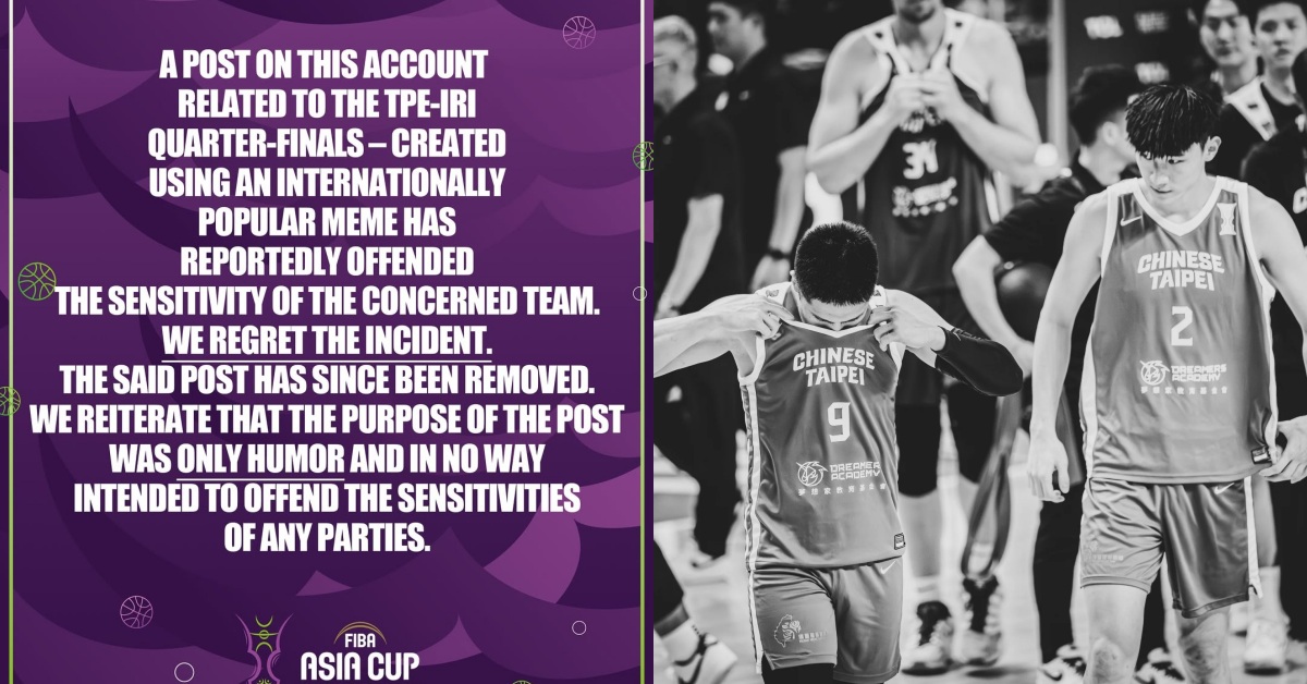 2025 亞洲盃八強賽中,中華隊遭到西亞強權伊朗上演 21 分大逆轉,賽後亞洲盃官方發出嘲諷意味濃厚的迷因梗圖調侃,引起台灣球迷眾怒,紛紛湧入該貼文底下留言,怒斥亞洲盃官方的不尊重。稍早亞洲盃官方將貼文立即刪除,並發佈了道歉貼文,表示:「該貼文的目的純粹是幽默,絕無意圖冒犯任何隊伍或任何人的感受。」
