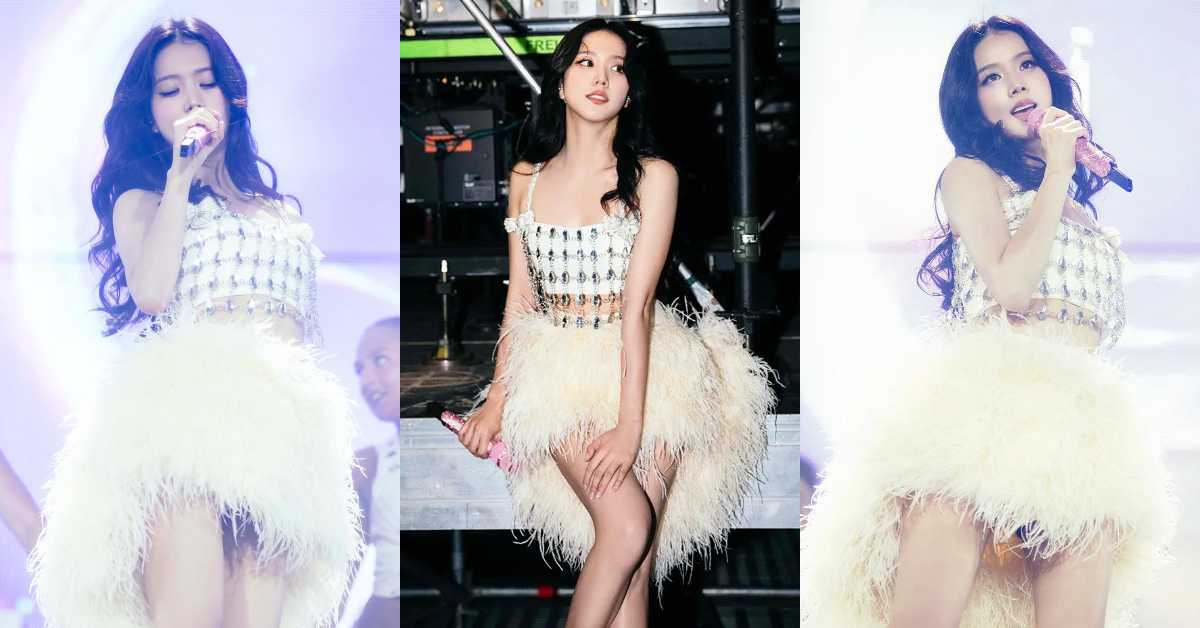 南韓大勢女團 BLACKPINK「Deadline」世界巡迴演唱會日前來到西班牙巴塞隆納,人氣成員 Jisoo(金智秀)昨日( 8/14 )在舞台上曬出全新戰袍,這身亮麗新裝是 Self-Portrait 專門為其品牌大使 Jisoo 打造的訂製禮服,上半身的緊身胸衣串綴著奢華水鑽,下半身則由鵝黃色羽毛裙襬高低錯落,露出一雙纖細美腿,整體顯得閃耀又高貴。