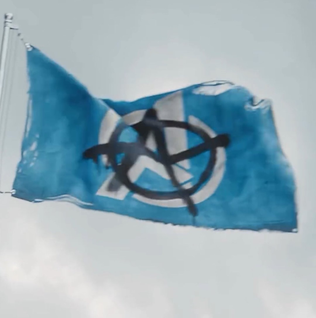 不過要注意的是,這個標誌早在《死侍與金鋼狼》中就曾登場。當時死侍與金鋼狼來到「虛空」並遇見克里斯·伊凡(Chris Evans)飾演的霹靂火時,背景旗幟上就能看見。而這次雷諾斯分享的紅色版本,據傳其實是粉絲自製,他只是覺得有趣才轉貼。