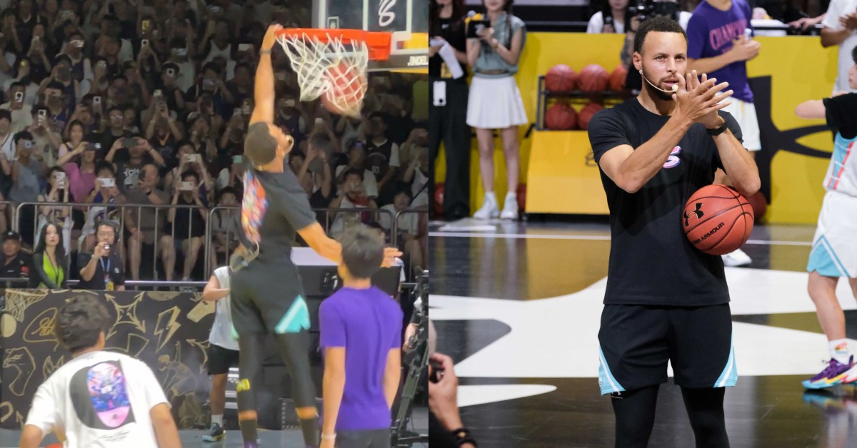 亞洲行首日,Stephen Curry 先是在 Curry Camp 完成自主訓練後,親自下場指導球員。來到下午的 Curry Con 開幕儀式,Curry 也對場內的許多設施與周邊表示興奮,在中央球場的節目環節,Curry 更是應觀眾要求,接連上演扣籃,展現親民作風。