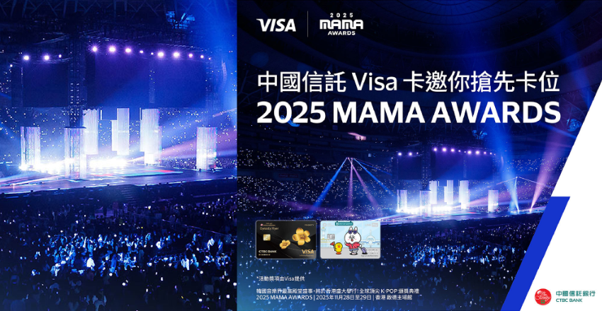 中國信託Visa卡友限定!刷卡消費就有機會獲2025 MAMA AWARDS入場邀請函,追星行程一次搞定!
