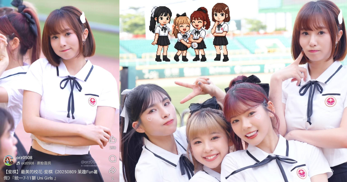 除了人氣王「斐棋」之外,其他 Uni-Girls 啦啦隊女神們也以校服拍攝美照和俏皮短影片,活潑甜萌的「包子」熱情舞動、眨眼歪頭殺的「賴賴」(蚊子)燦爛甜笑、長髮披肩的「妮妮」氣質滿分、泰雅族正妹「伊 MänPíng 」吐舌超犯規,在 5 位啦啦隊女孩當中大家最愛哪一位呢?小編絕對最愛「斐棋」啦!