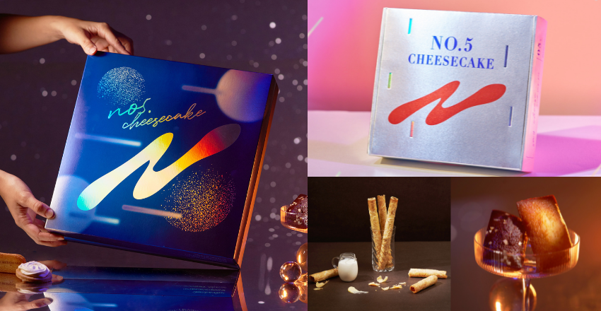 禮盒外觀以深邃夜空藍為基調,結合虹光鐳射星軌與品牌標誌「N」字圖騰,彷彿皓月緩緩升起的城市夜景,銀色粒子點綴如流星般閃爍,綻放出一場專屬 No.5 CheeseCake的璀璨煙火!大膽俐落的盒型搭配大尺寸設計,視覺氣場十足,低調又閃耀得剛剛好,成為中秋送禮的亮眼存在,直接成為今年中秋最想收到的禮盒清單!