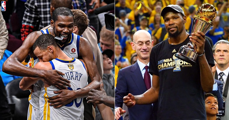 Durant 在 2016 年休賽期加盟勇士,三年內率隊三度打進總冠軍賽並奪下兩冠,且連續兩年榮膺 FMVP。然而在2019年離隊後,勇士仍在 2022 年再度奪冠,Curry 更拿下生涯首座 FMVP,這也讓「Curry 靠自己奪冠」的話題不斷被球迷拿來與 Durant 做比較。