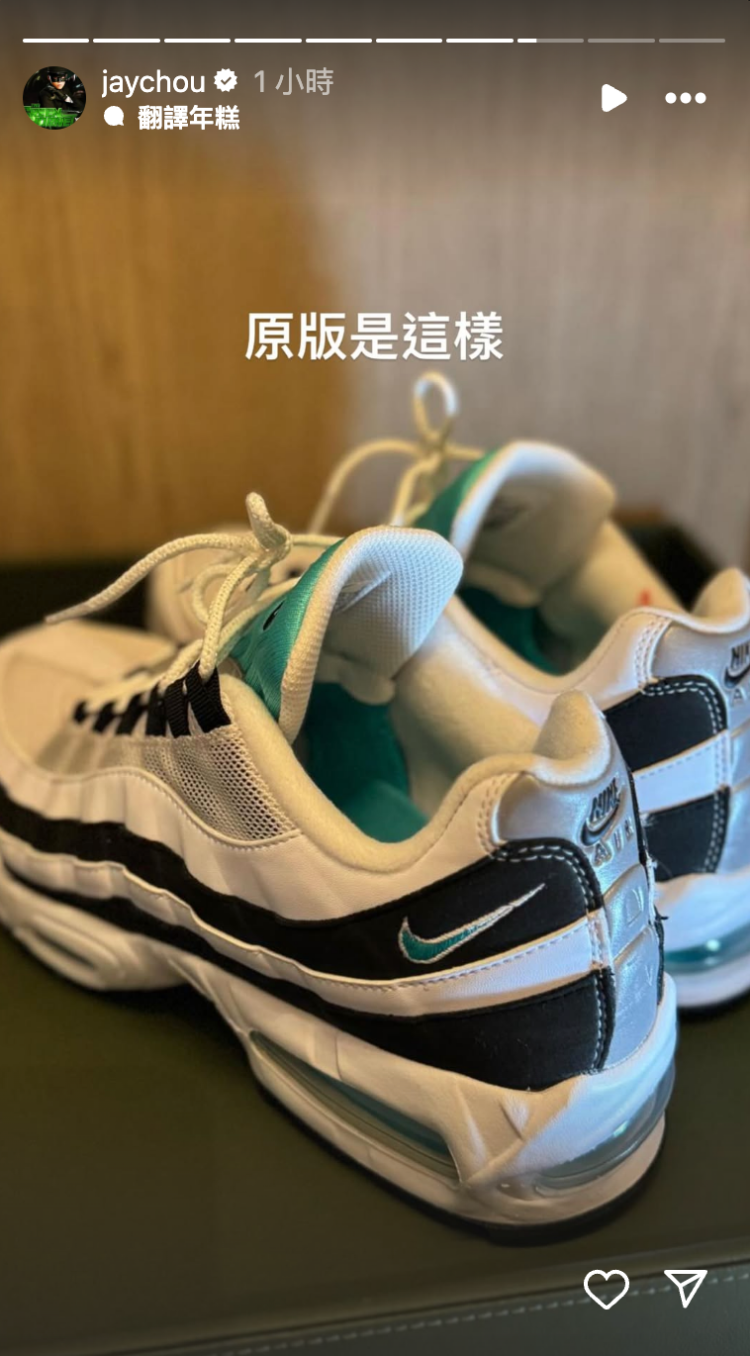 不愧是哥中之哥!周杰倫曬 Nike 專屬打造 Air Max 95