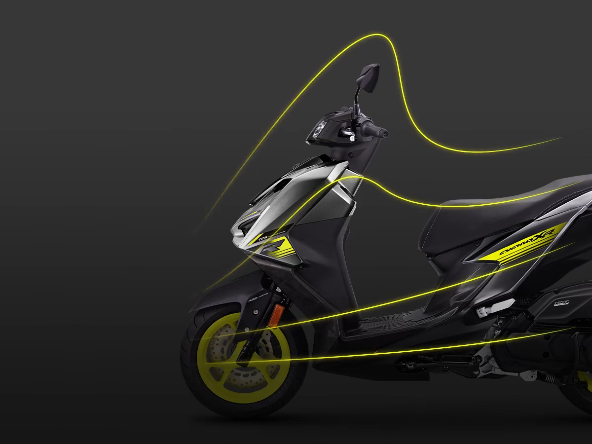 為對應性能提升,車身與底盤也全面革新。新車採用全新開發的 DL8 車架,縱向剛性提升19%;懸吊經重新設定,Cygnus XR 更標配掛瓶後避震。煞車系統則強化前輪制動,換上267mm碟盤與加大活塞卡鉗,煞車力道提升60%。實用性上更搭載可變色溫的 LED 魚眼頭燈、VA LCD 儀表板、藍芽解鎖車輛等科技配備。