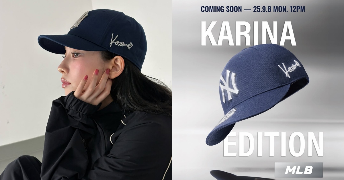 Karina 今年成為 MLB Korea 代言人,她的首頂聯名帽款於 9 月 8 日於韓國正式開賣。整頂以深藍色洋基棒球帽為主軸,側邊則印有 Karina 的草寫字樣,洋基標誌以銀色金屬立體 Logo 呈現,展現非凡質感。