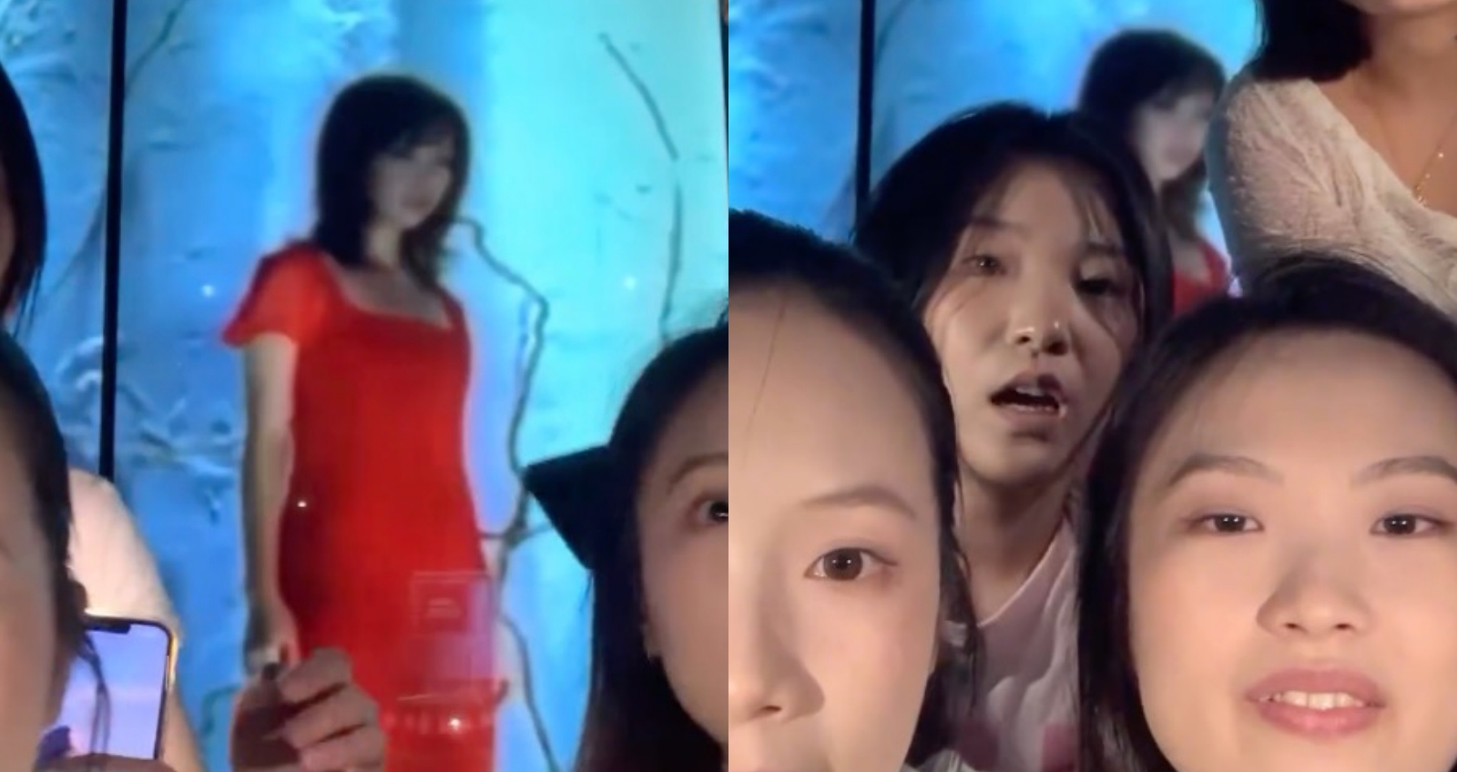 影片最一開始是在 Threads 上被大量分享,只見畫面中四名女孩在 KTV 正湊在一起調整角度準備合照時,下一秒,背後的螢幕突然出現一名身穿紅色洋裝的身影的女子。其中一人當場嚇喊「後面有人!」,其餘人立刻尖叫往旁邊閃避,畫面也停在這一刻,疑似是鬼影的模樣也嚇壞不少人。