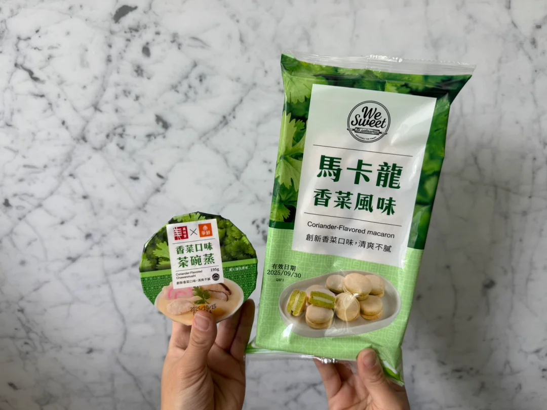 全聯「香菜大軍」由 We Sweet 「香菜風味馬卡龍8入」領軍,驚奇滋味顛覆所有想像;美味堂再祭出「香菜風味茶碗蒸195g/杯」,將清新香菜香氣融入柴魚高湯,配上雞肉、玉米、魚板,口感滑嫩卻層次滿滿。