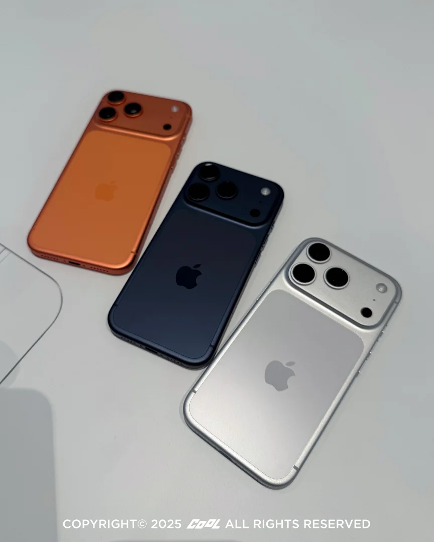 首先最受歡迎的 iPhone 17 Pro 與 iPhone 17 Pro Max,顏色有銀色、宇宙橙色及藏藍色。由於今年機身改用一體成型的鋁金屬+超瓷晶盾背板,兩種材質的顏色落差頗大,藏藍色反而成為了這次的黑馬。