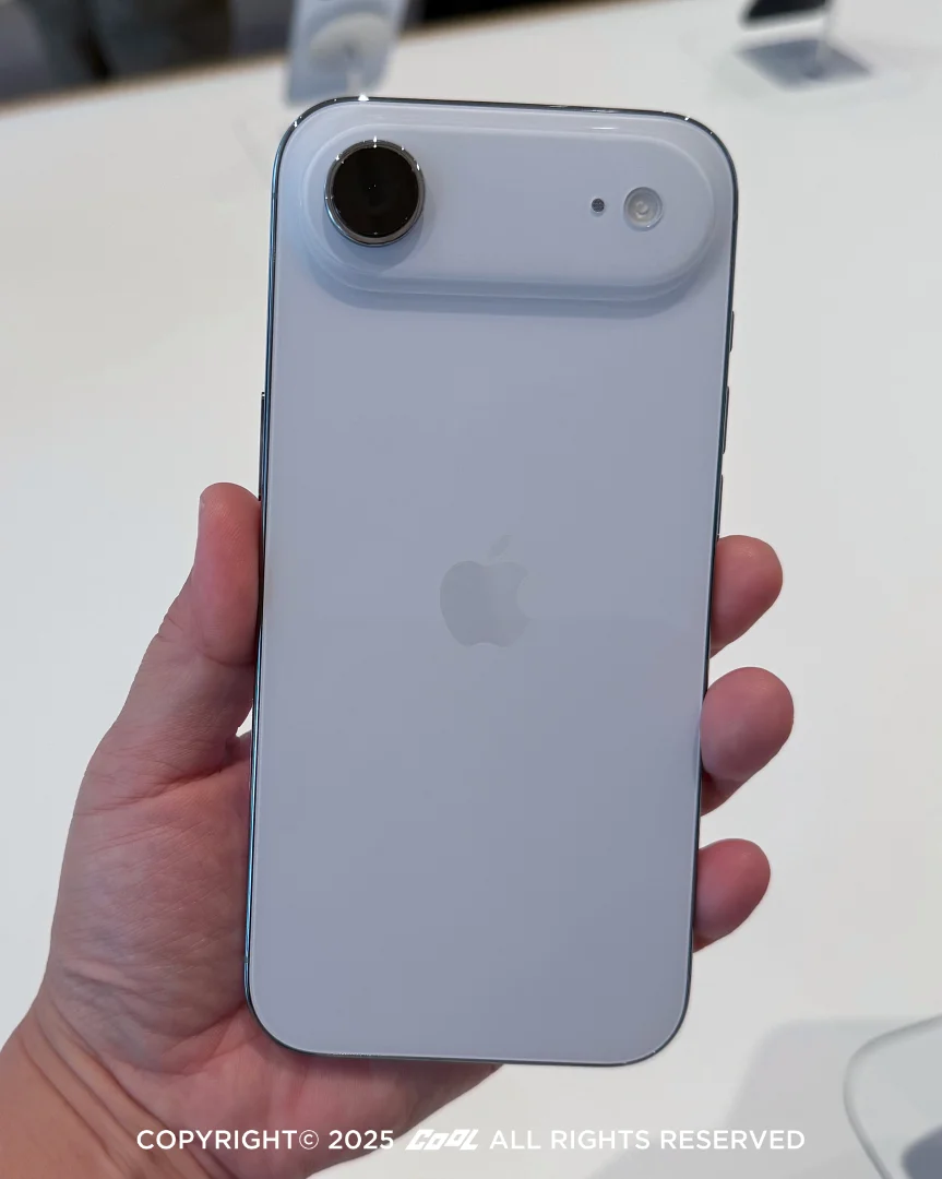 取代 Plus 系列的全新 iPhone Air,厚度僅 5.6mm、重 165g,在亮面、鈦金屬邊框搭配一整片超瓷晶盾玻璃背蓋,不論是握持的手感或是配色(天藍色、淺金色、雲白色、太空黑色)都很讚。