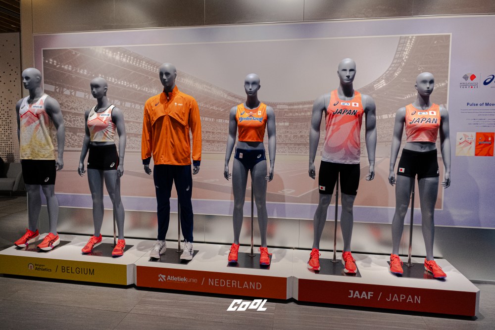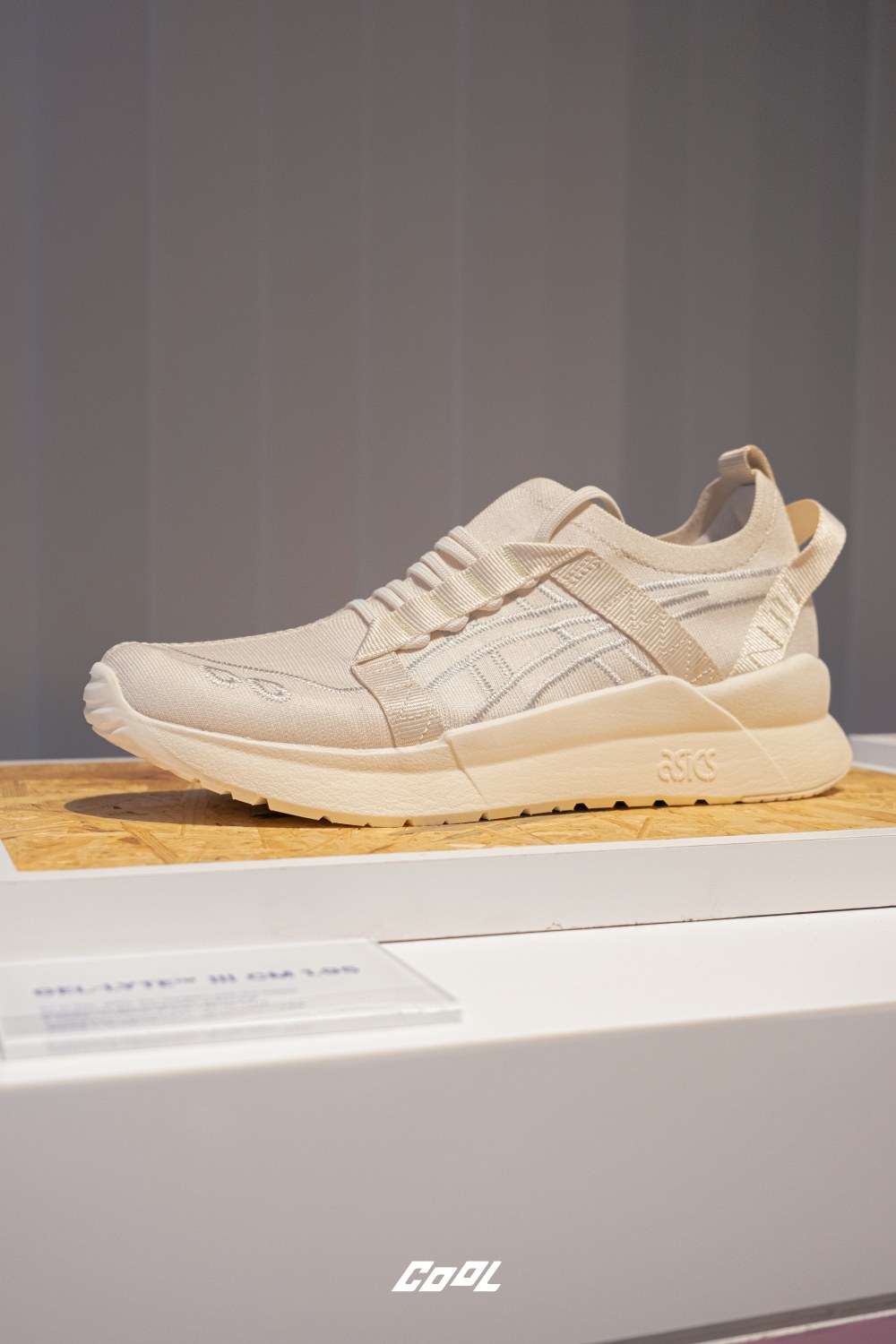 右側展示出這次贊助球隊的服裝,分別為比利時、荷蘭、日本,正前方則是展示出最新的 SportStyle 鞋款,令編輯最印象深刻的有近年火紅的穆勒拖鞋型 GEL-STYRAX,以及降低碳排放為核心的 GEL-LYTE III CM 1.95,這兩雙鞋分別象徵了 ASICS 在潮流與環保議題上的投入,尤其環保更是現在現代許多大型賽事的目標宗旨。