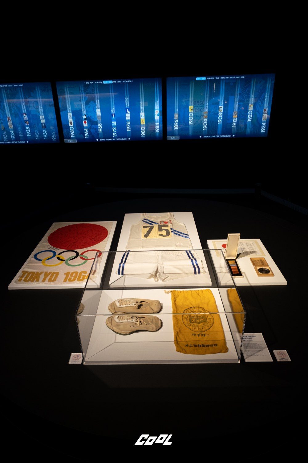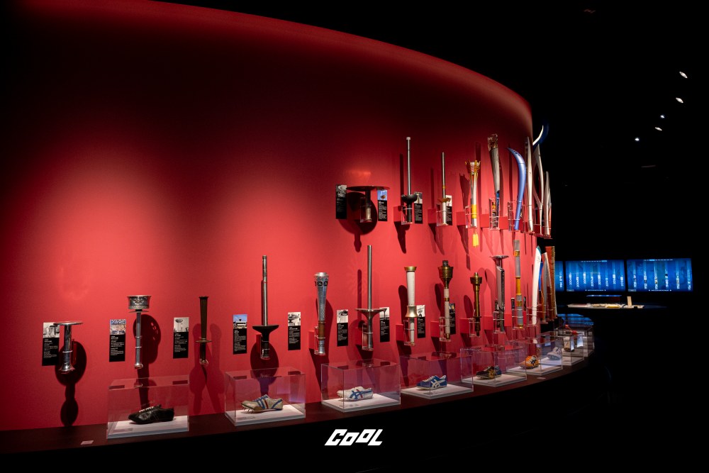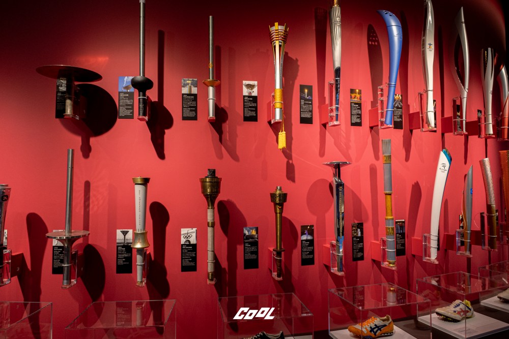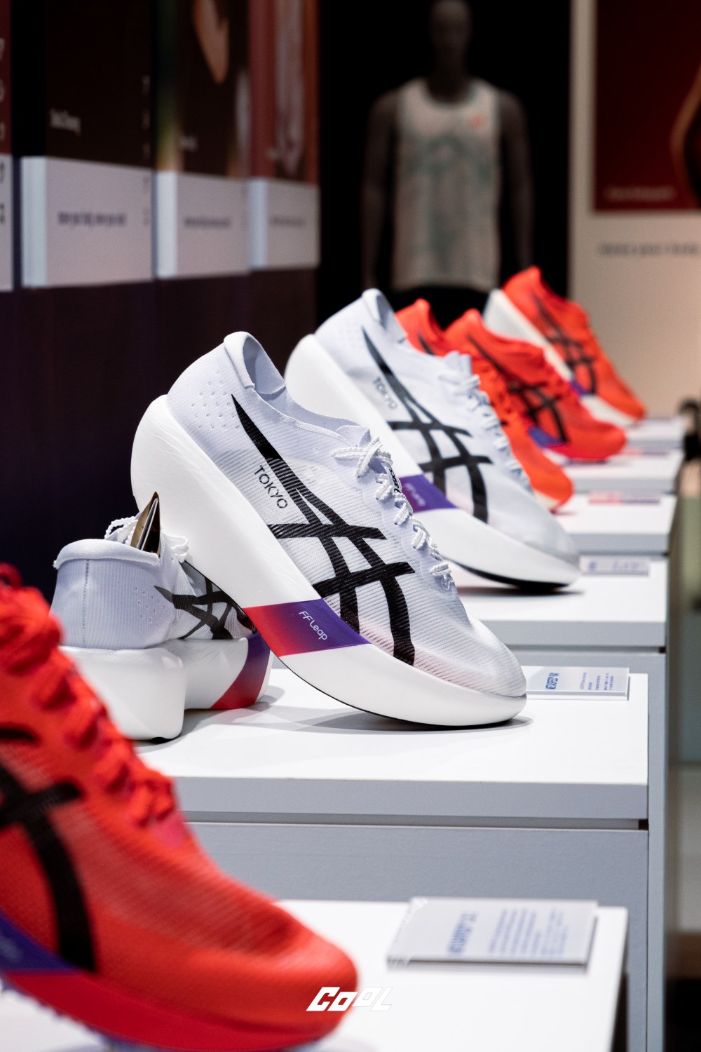 來到二樓,ASICS 將選手專屬裝備與奧林匹克博物館的典藏完美結合。展區一開始,映入眼簾的是眾多選手的戰靴,多以 METASPEED SKY、RAY 等最新鞋款登場,展現科技感十足的競速姿態。隨著腳步深入,就像踏進一條時光隧道,1964 年東京奧運的珍貴物件、歷屆聖火火炬等歷史藏品一一現身,散發濃厚的時代氣息。ASICS 更將馬拉松鞋的演進故事穿插其中,巧妙呼應 TOKYO Collection 「貫通過去與現在」的精神,像是一場時光之旅,邀請大家隨著 ASICS 的腳步,一同見證田徑史的榮光與品牌邁向未來的樣貌。
