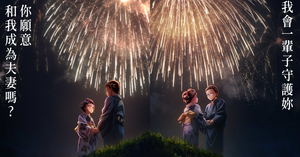 電影發行商木棉花也同步公開全新視覺圖,以「狛治」與「戀雪」在夜空煙火下的約定場景為主題,畫面透過兩人交錯的視角呈現,並搭配獨白文字,細膩傳達兩人間真摯情感,營造出細膩而動人的氛圍,也再次呼應劇中重要情節,讓觀眾重溫這段浪漫的愛情故事。