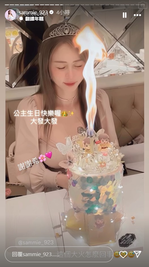 啦啦隊女神「短今」在生日當天曬出與爸爸、媽媽一家和樂的溫馨照片,以及接收蛋糕的歡樂短影片,生日蛋糕上頭綴滿透明蝴蝶和點點星光,點燃生日蠟燭時火光大噴發,帶有「大發」的好預兆,希望「短今」接下來的應援事業也能夠閃亮動人、火旺長久呢!