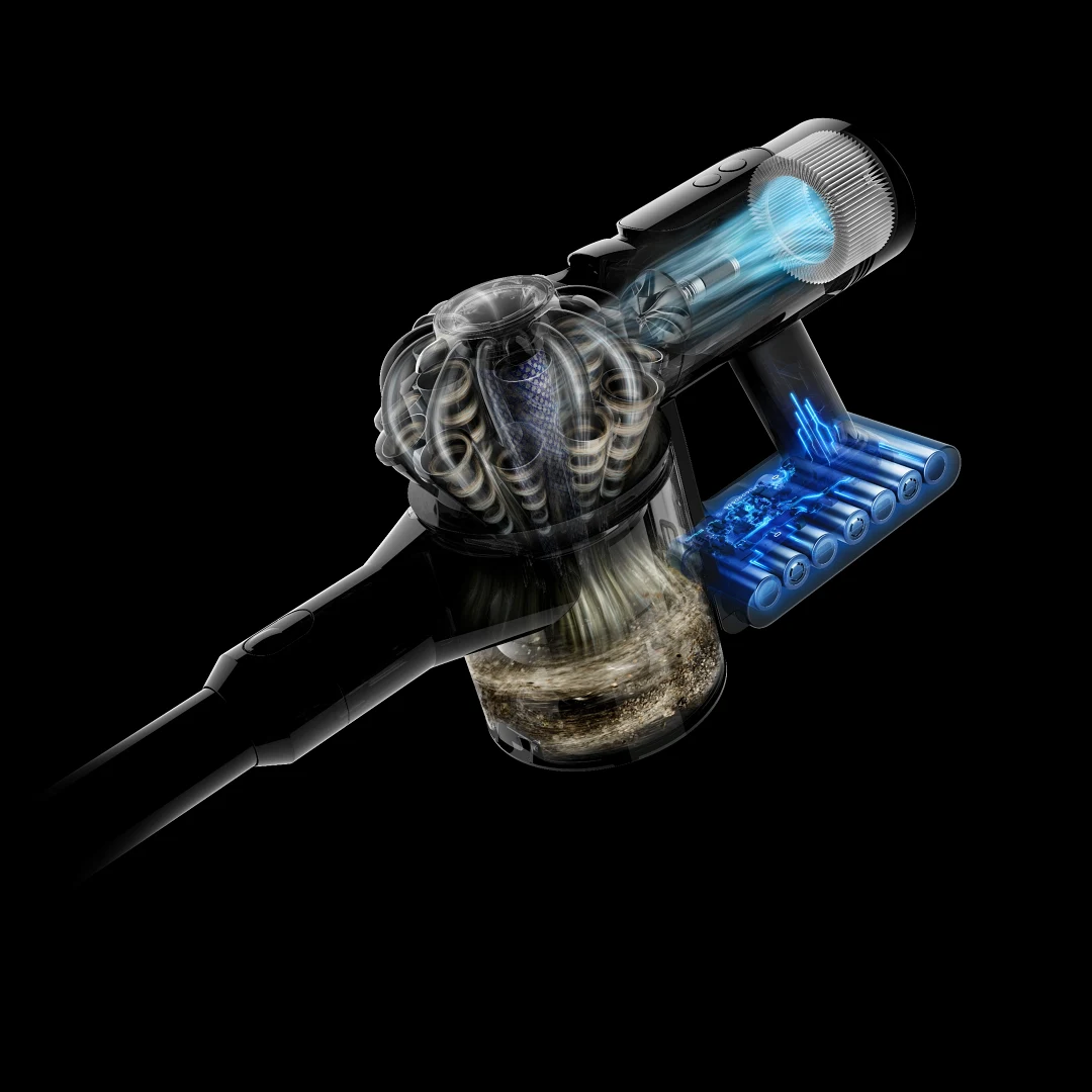 選購無線吸塵器最重要的指標就是吸力。全新 Dyson V8 Cyclone 配備升級版數位馬達,每分鐘轉速高達 110,000 轉,輸出 150AW 強勁吸力。搭載 Dyson 獨家雙層 15 個圓錐氣旋技術,能高效分離空氣與微塵,確保長時間維持穩定吸力。